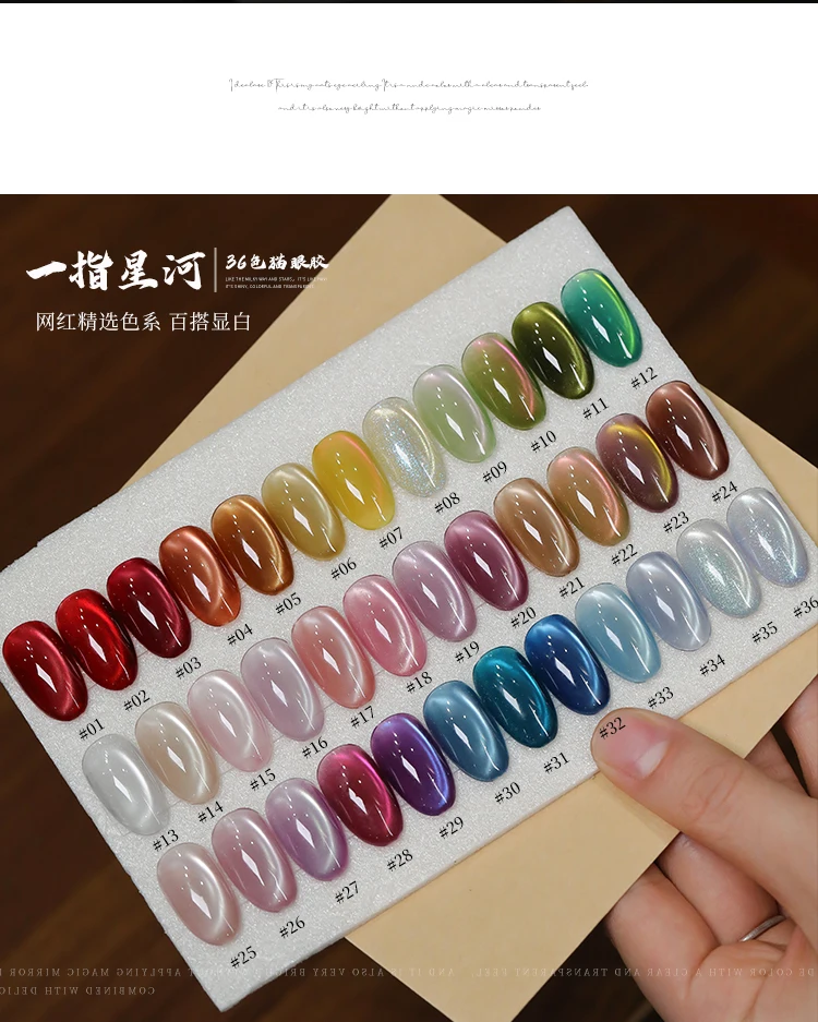 36color/set Star River Cat Eye Gel Nails Polish 15ml Magnetic Gel Glass Beads Semi Permanent Soak Off UV Nail Gel For Nail Salon
