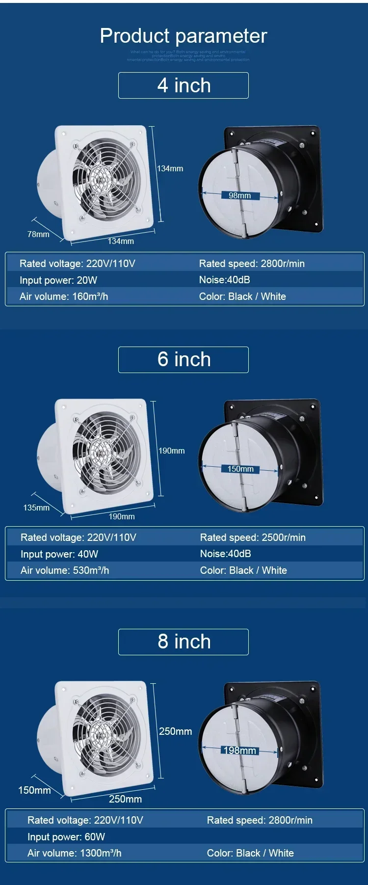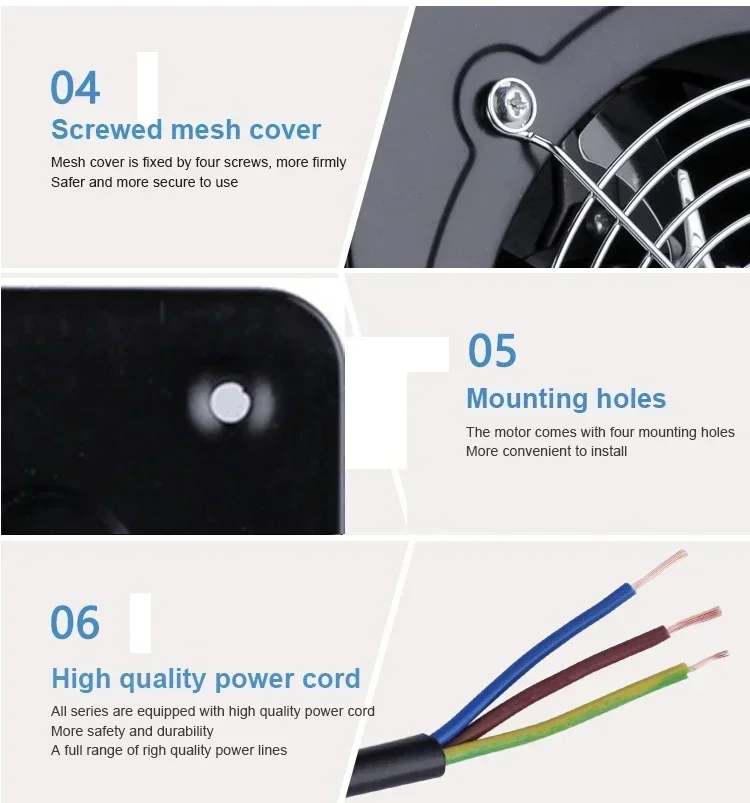 METAL OUTER FRAME: It adopts electrostatic painting technology with exllent wear resistan and high-quality copper enameled wire, which can be used for a long time. It is suitable for plas that require ventilation, such as kitchens, offis, shops, living rooms, bathrooms and windows where the air circulation is not smooth or the air is not clean.
