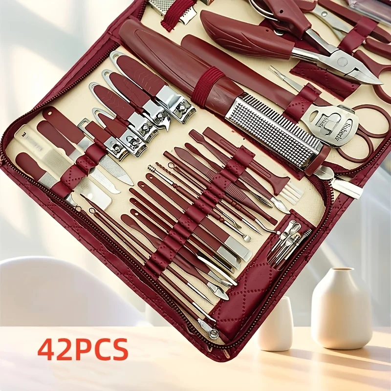 42pcs Professional Manicure & Pedicure Set | Stainless Steel Nail Clippers, Cuticle Nippers, Portable Travel Case, Beauty Tools