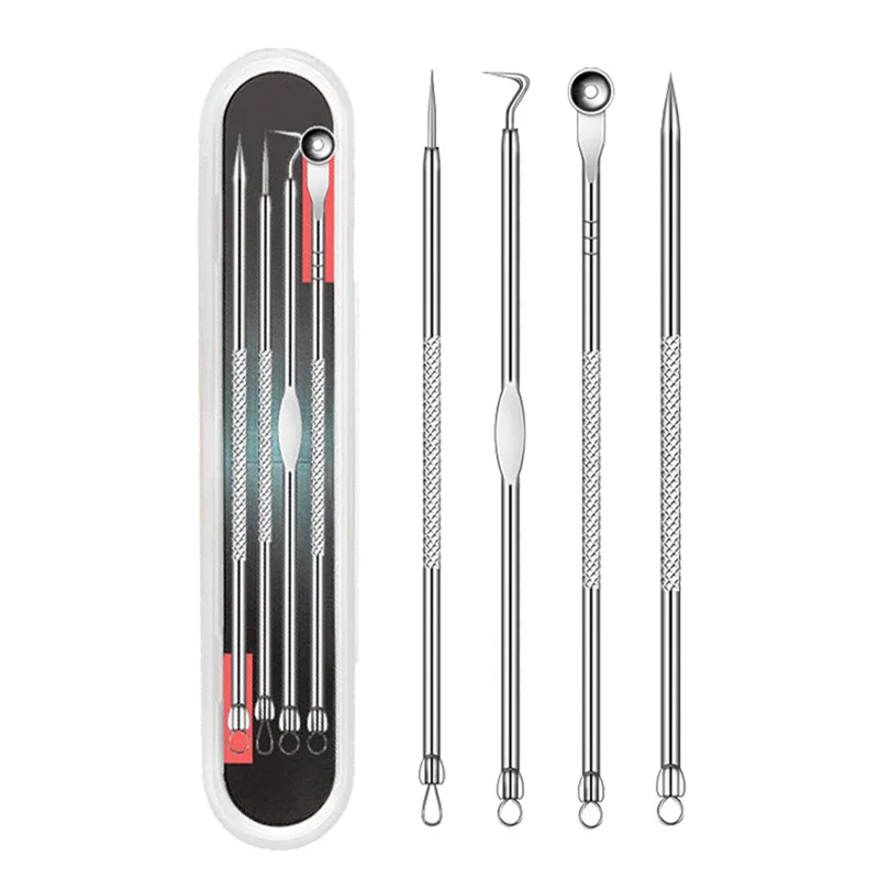 4pcs/set Acne Removal Needles Stainless Steel Pimple Blemish Blackhead Remove Spoons Face Skin Care Tools Facial Pore Cleaner