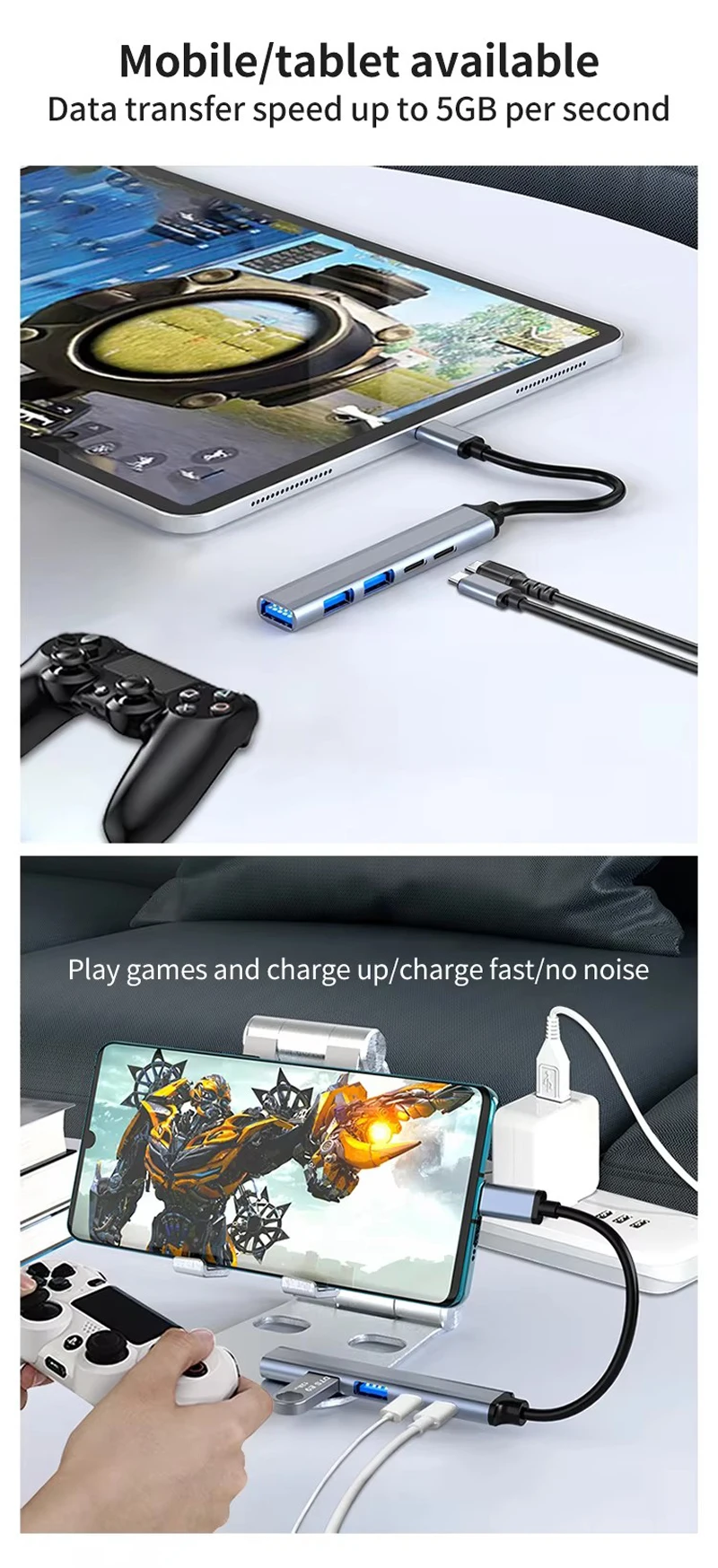 5 in 1 USB-C HUB type C to 1*USB3.0+2*USB 2.0+1*PD charging +1 Type C Data