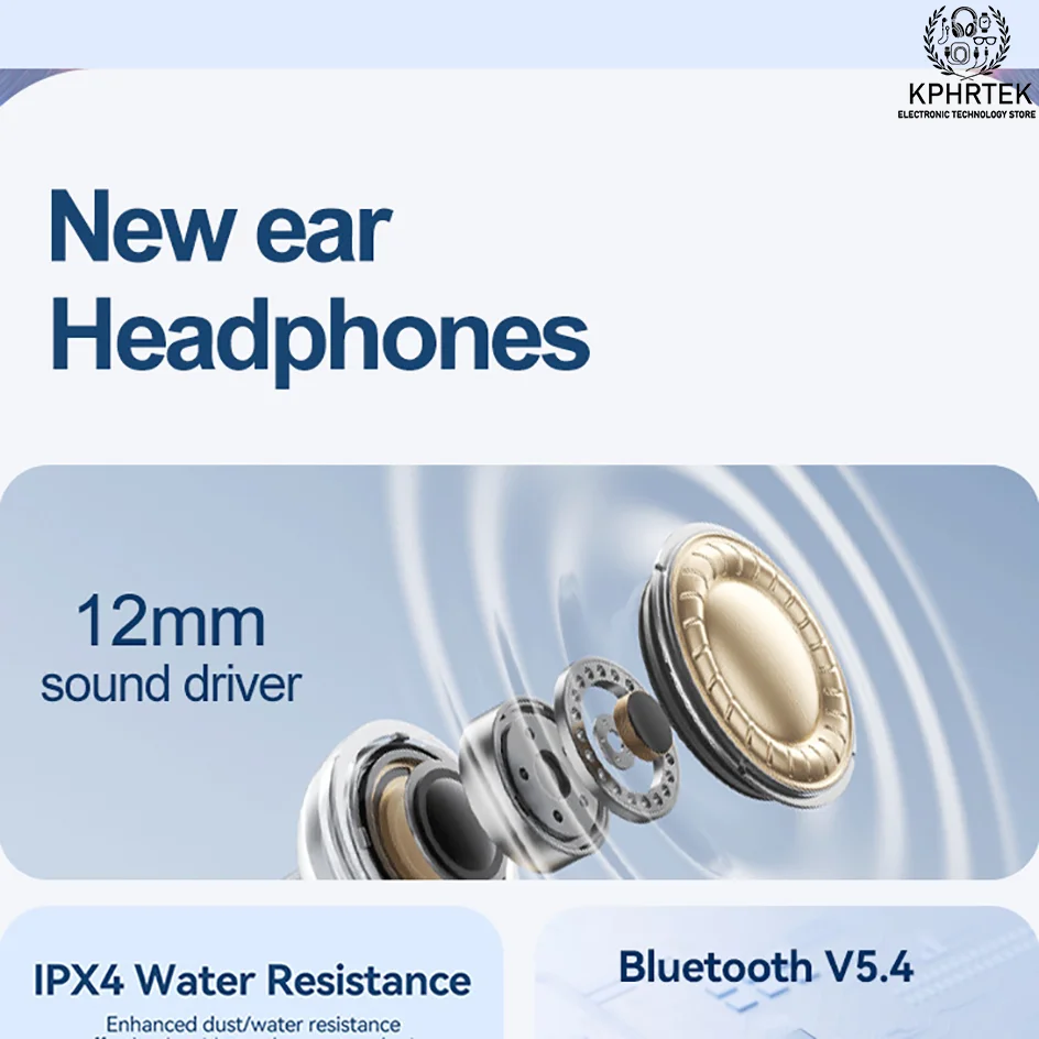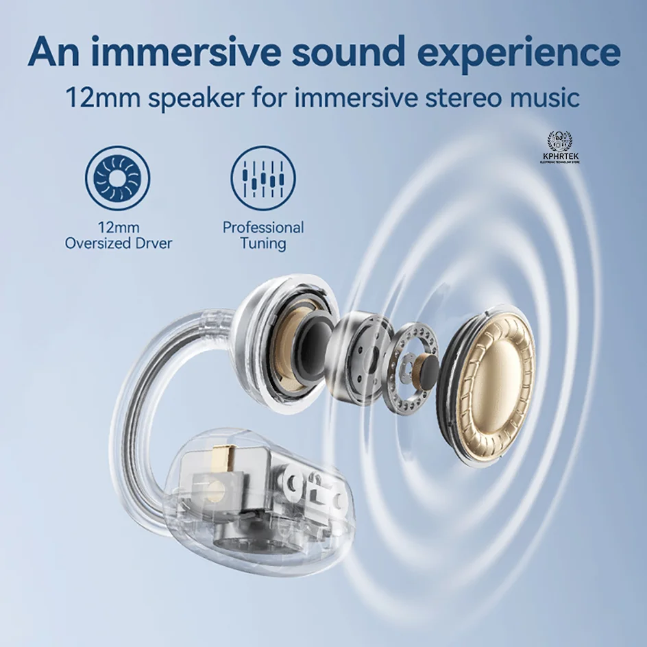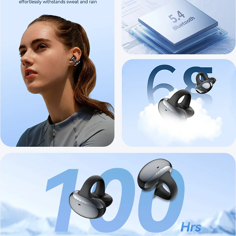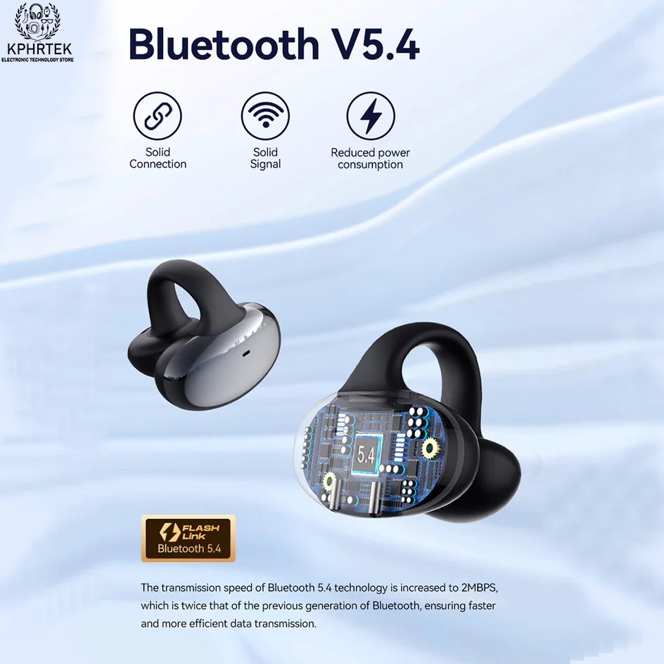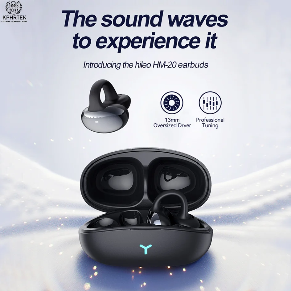 50 PCs HM20 Bluetooth earbuds, clip-on noise-canceling true wireless TWS, ultra-long battery life, zero latency, gaming custom design
