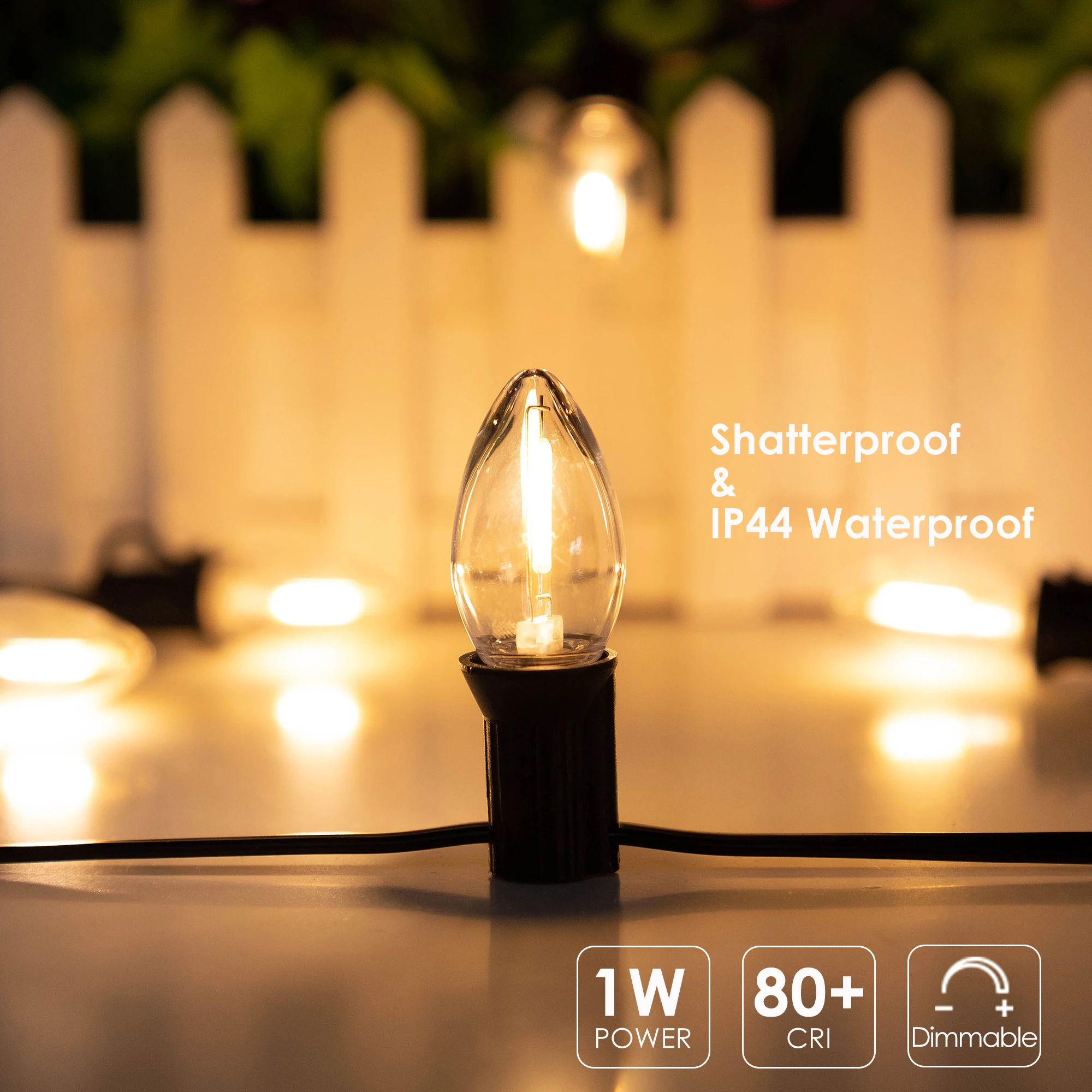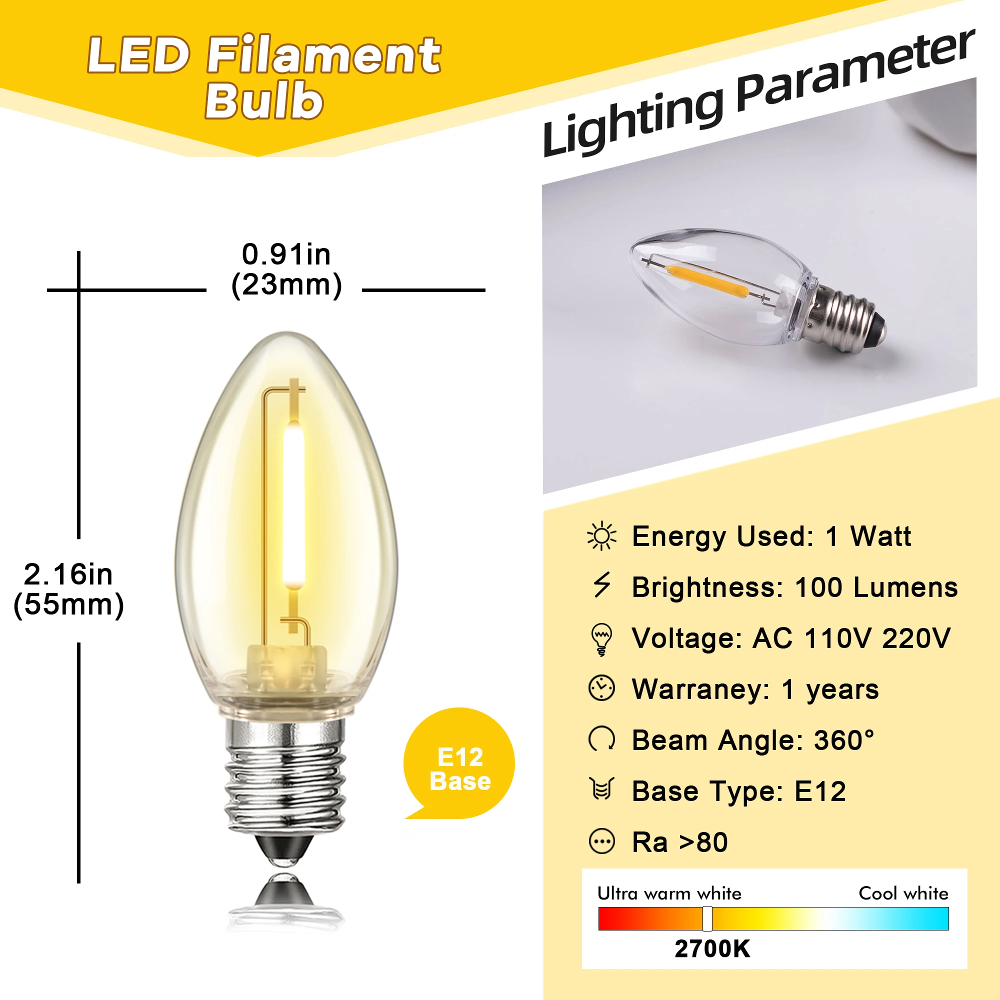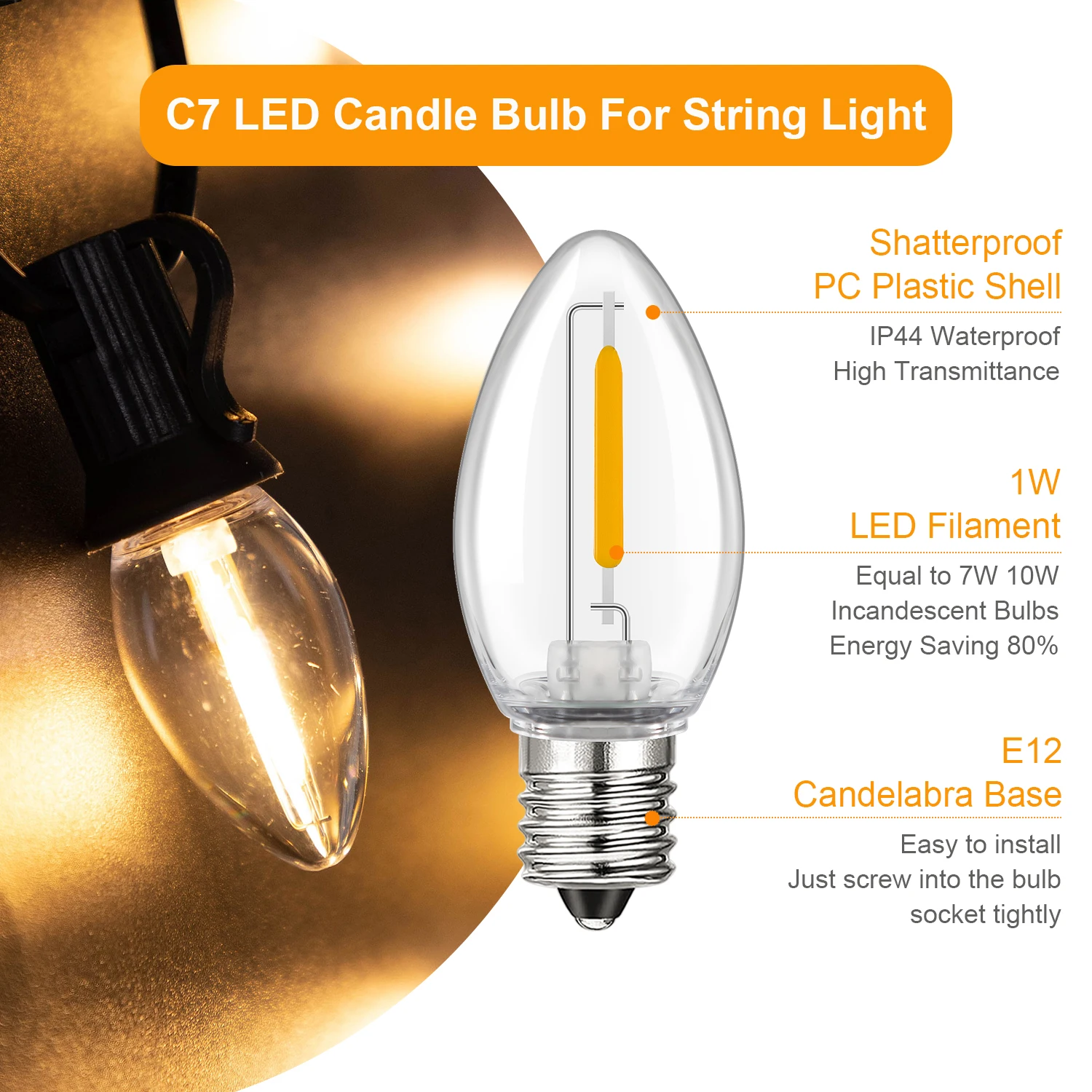 50PCS C7 LED Light Bulbs Plastic Shatterproof E12 Candelabra Base 1W Equal to 10W Replace Bulb For Outdoor Decor String Lights
