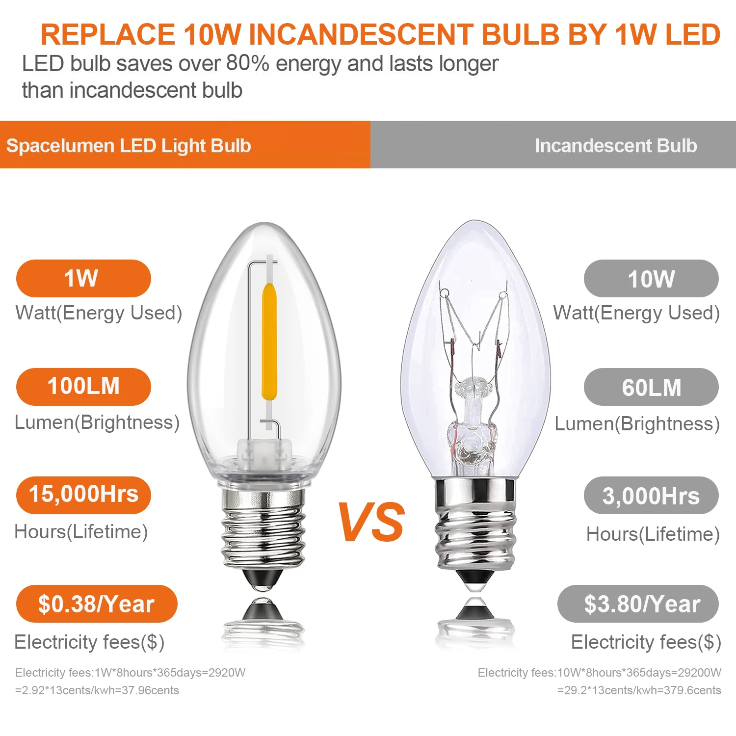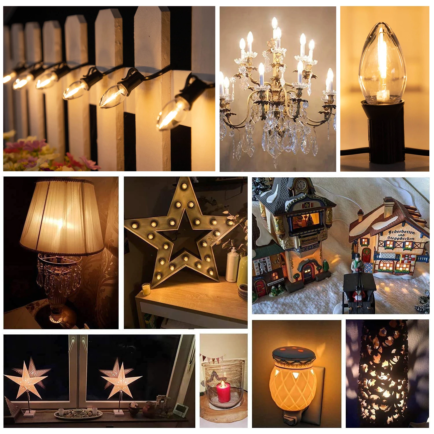 Create Cozy Atmosphere: C7 LED Replacement Bulbs is suitable for E12 standard base lamps. Suitable for all kinds of business and family atmosphere lighting. Can be applied to night lights, plug-in night lights, decorative lighting, salt lamps, salt baskets, Christmas string lights, Christmas village good choice, for your home to create a suitable mood and atmosphere.