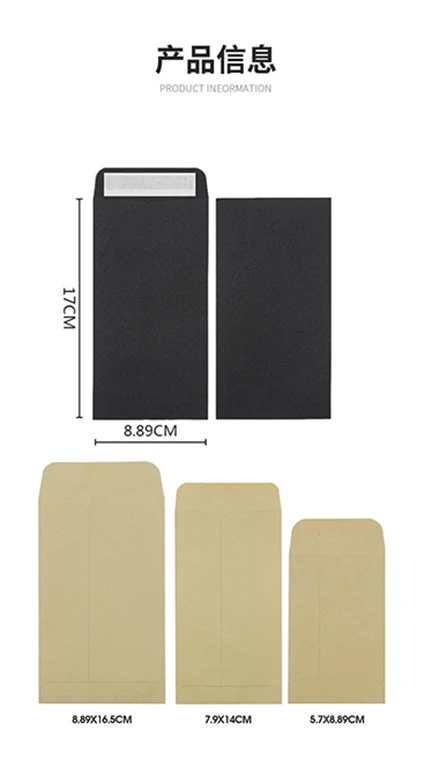 50pcs Envelopes Kraft Black for Cash Banknote Small Change Storage Packaging Sealed Bag Business Document Wedding Invitations
