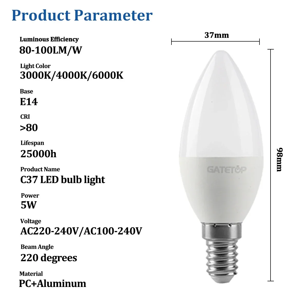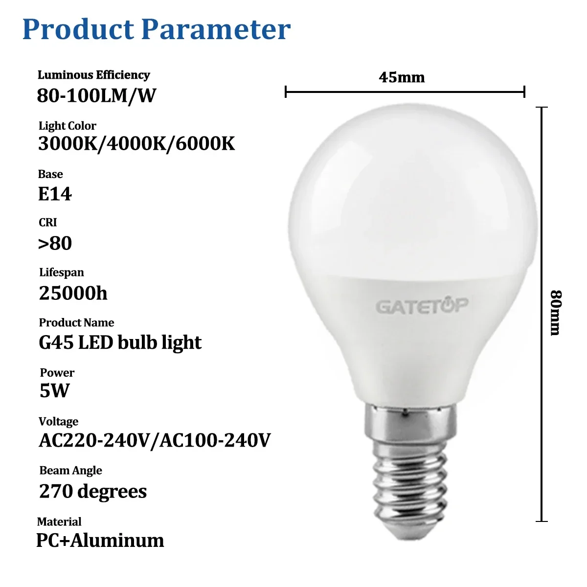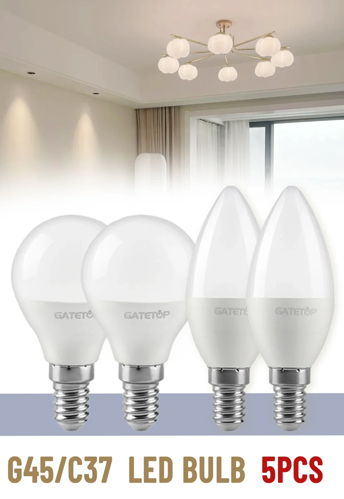5Pack LED Light Bulb E14 5W G45 C37 AC 220V 110V 120V Mini Lamp No Flicker 3000K 4000K 6000K Cold Lighting Bombilla Inteligente