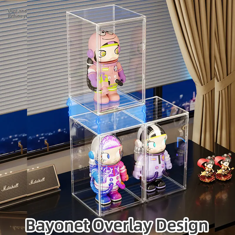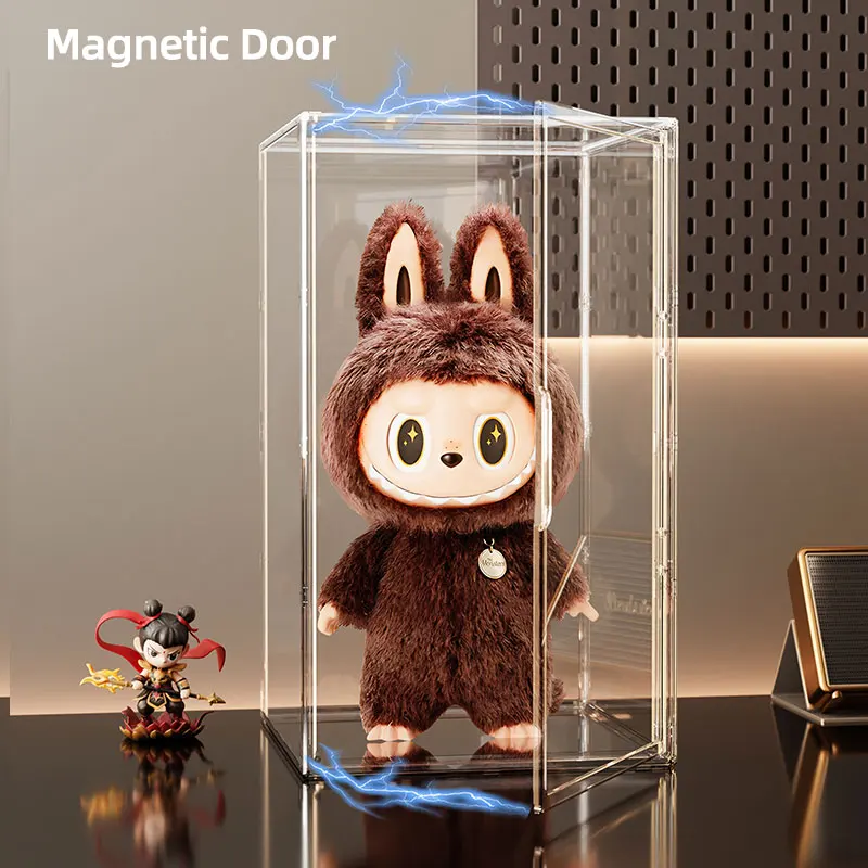 60x35x30cm Large Clear Stackable Storage Box with Magnetic Door for Helmets, Collectibles, Books, Shoes, Home Display Cabinet