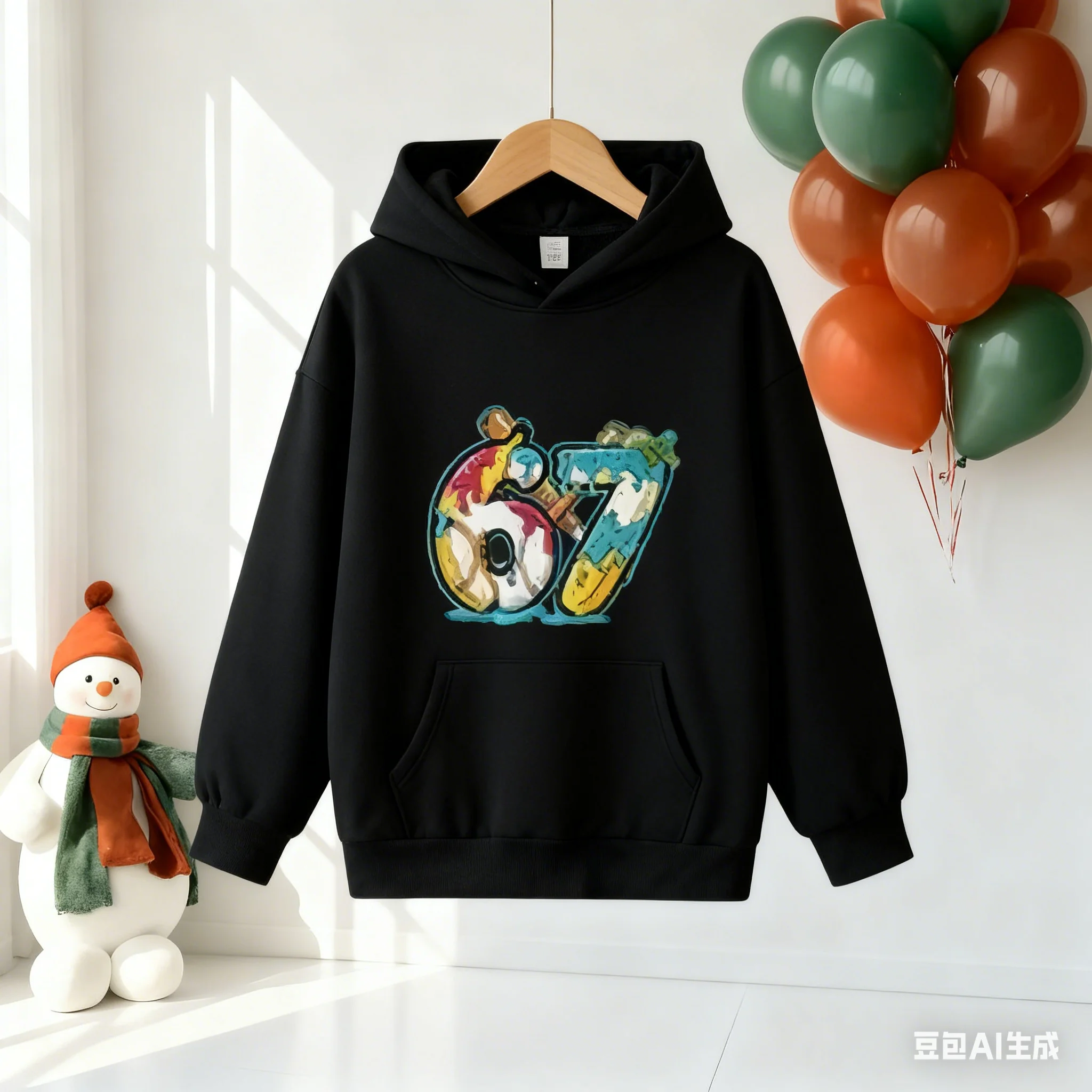 67 Kid Ice Cream Drip Meme Funny Six Seven Gen Alpha Slang Hoodies 6-7 Boys Girls Winter Hoodies