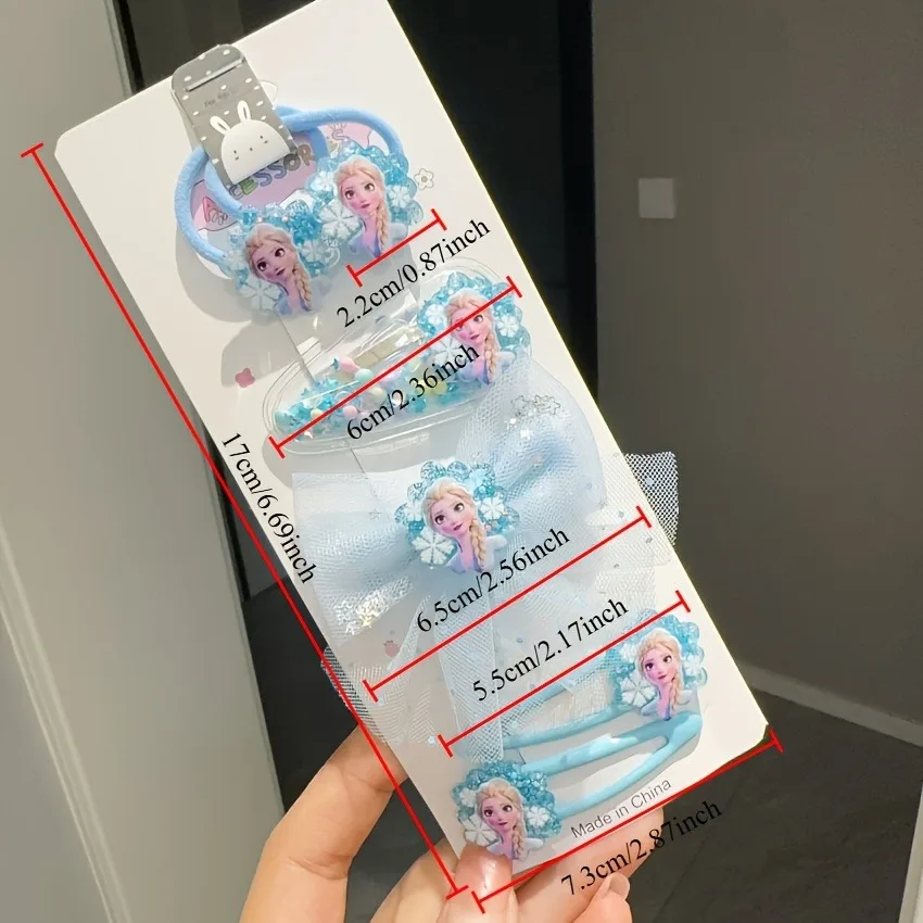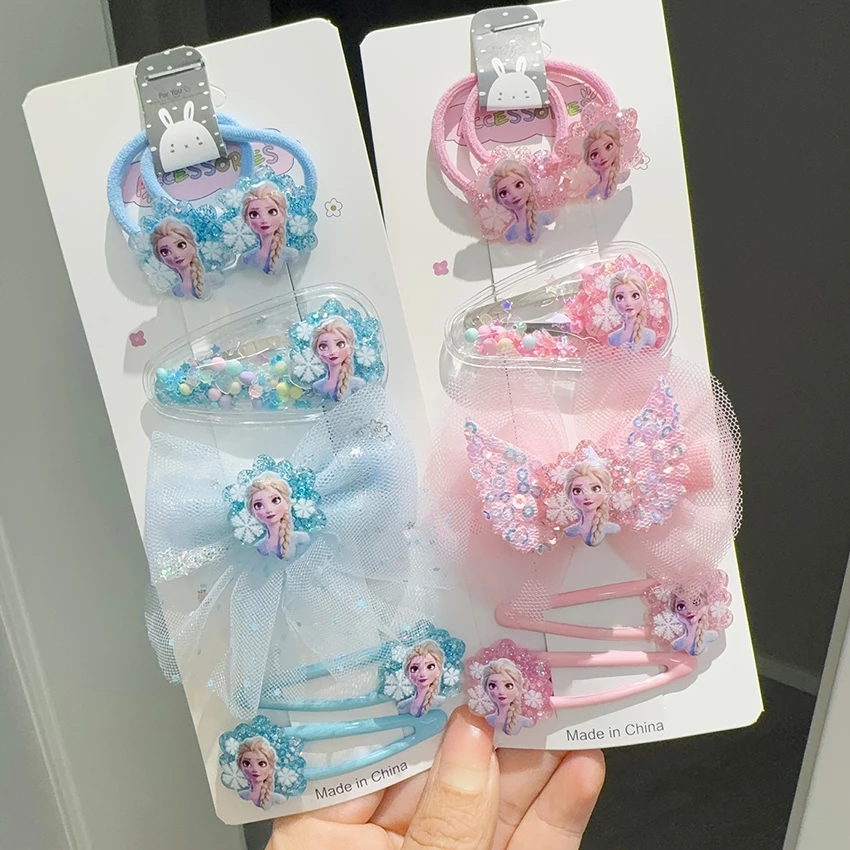 6pcs/set Cute Disney Girl Hair Accessories Frozen Elements Princess Hair Clip Daily Performance Sweet Bow Children’s Hair Circle