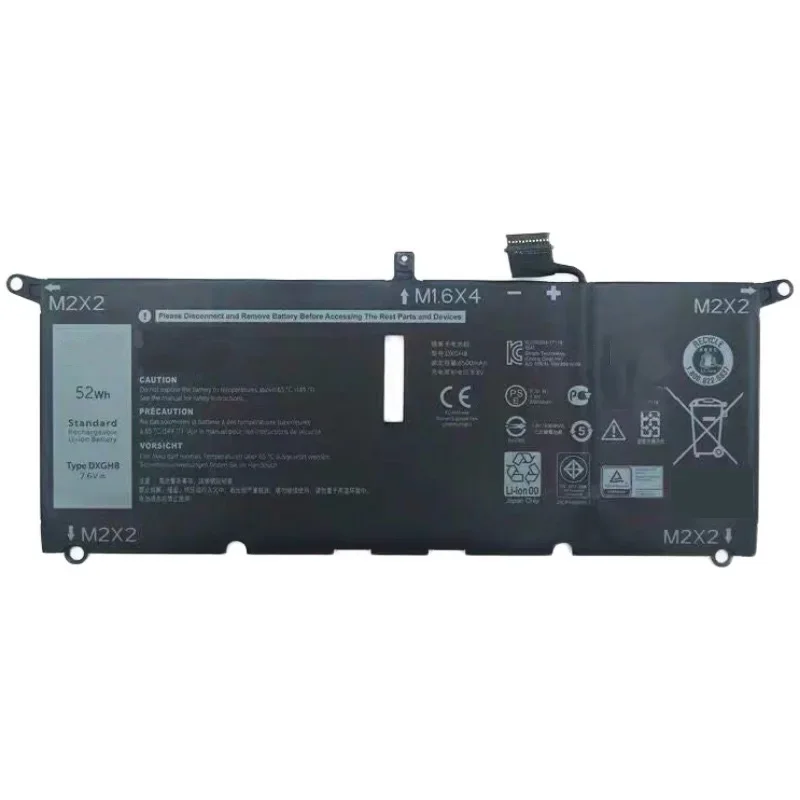 7.6V 52WH New DXGH8 Original Laptop Battery for XPS 13 9370 0H754V Inspiron 5390 5391 7191 7490 P82G P114G