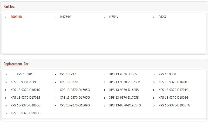7.6V 52WH New DXGH8 Original Laptop Battery for Dell XPS 13 9370 0H754V Inspiron 5390 5391 7191 7490 P82G P114G