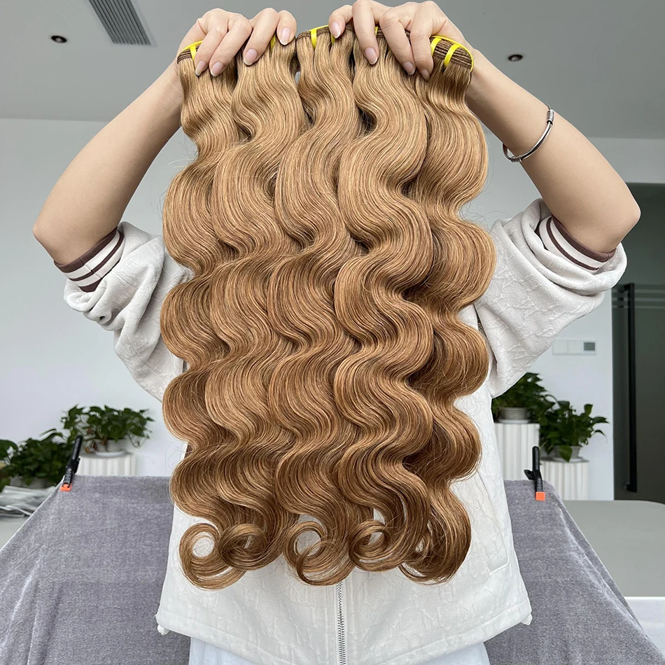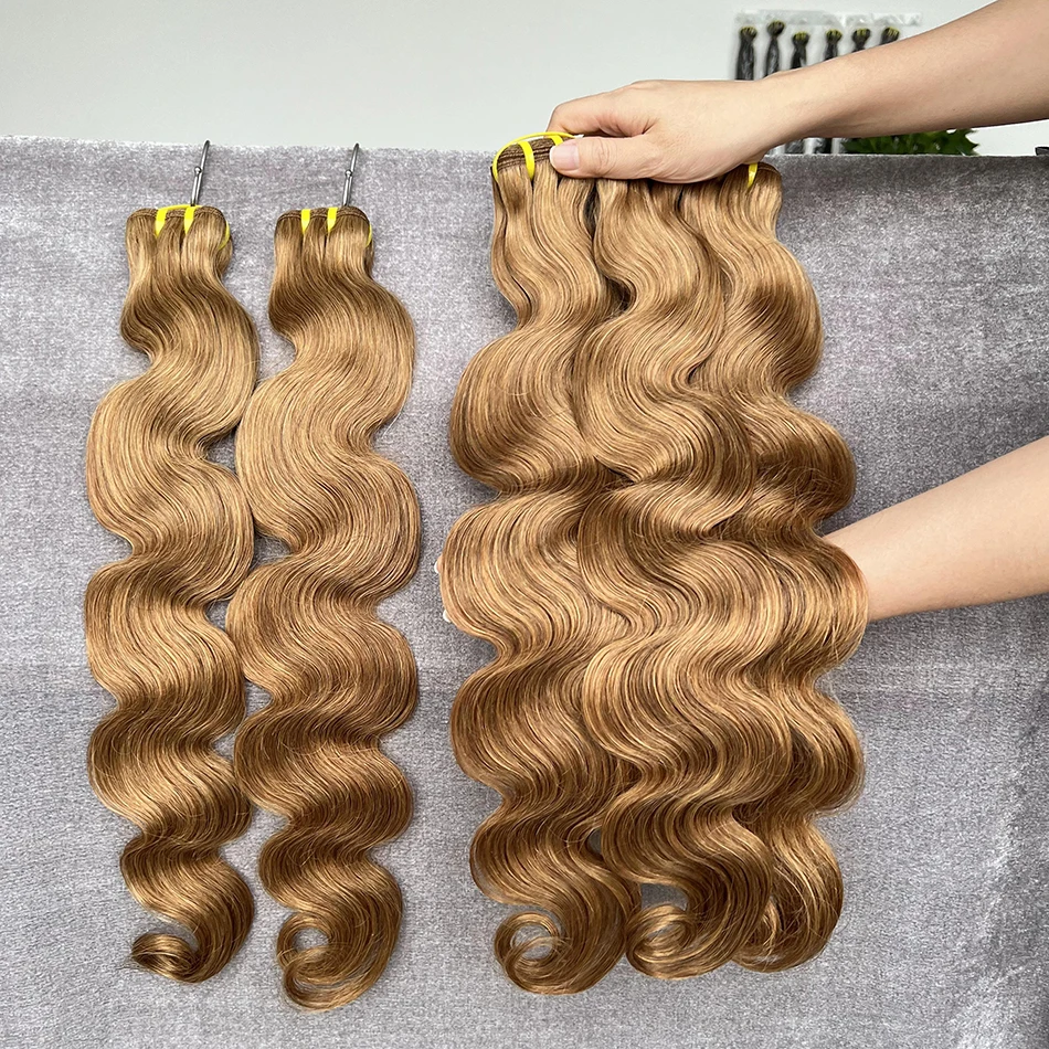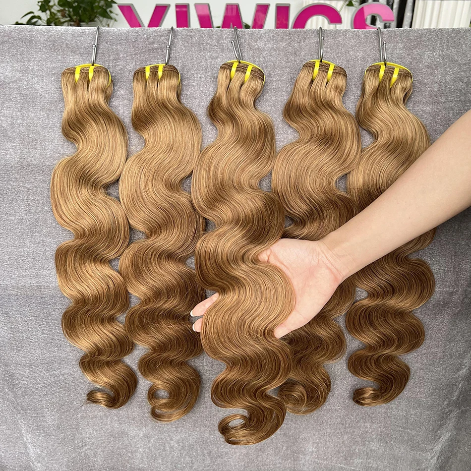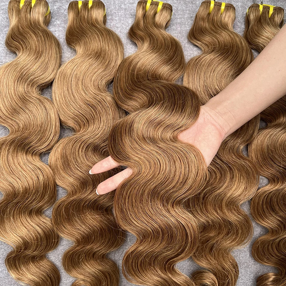 #8 Light Brown Colored Human Hair Body Wave Natural Remy Human Hair Bundles 16 To 28 Inches Sold By 1/3/4 Hair Extension