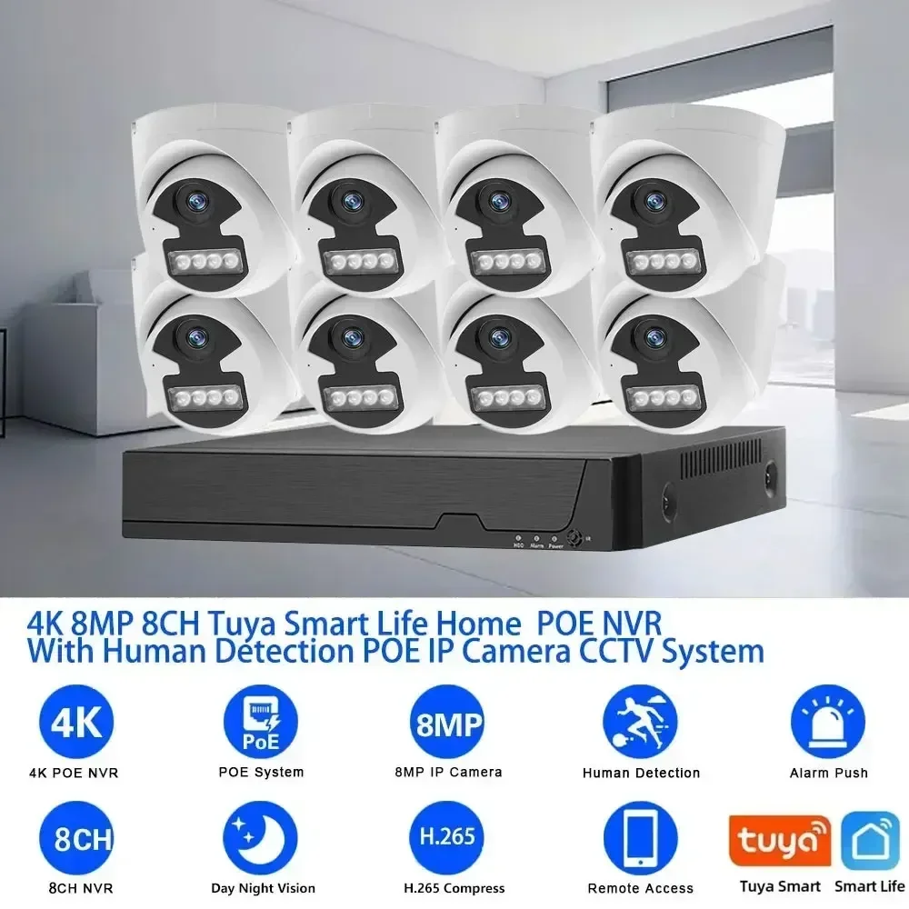 8MP 4K Smart Life POE Dome Security Camera System 8CH NVR with Human Detection Indoor CCTV IP Cam Video Surveillance Home Office