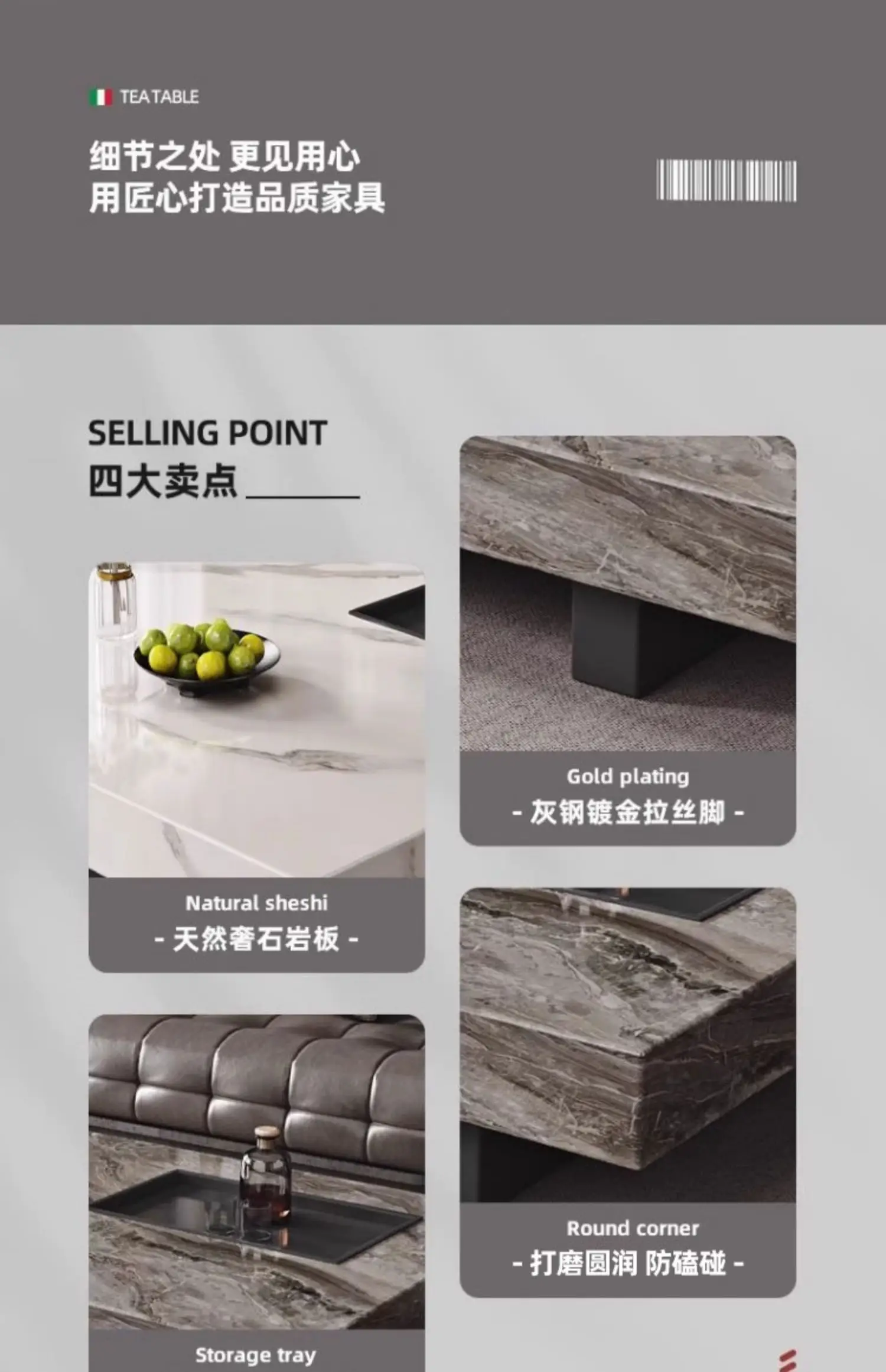 - Finish material: rock slab