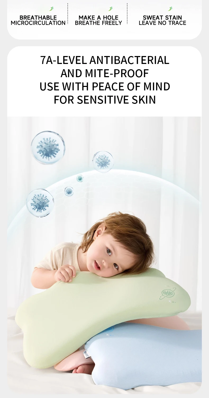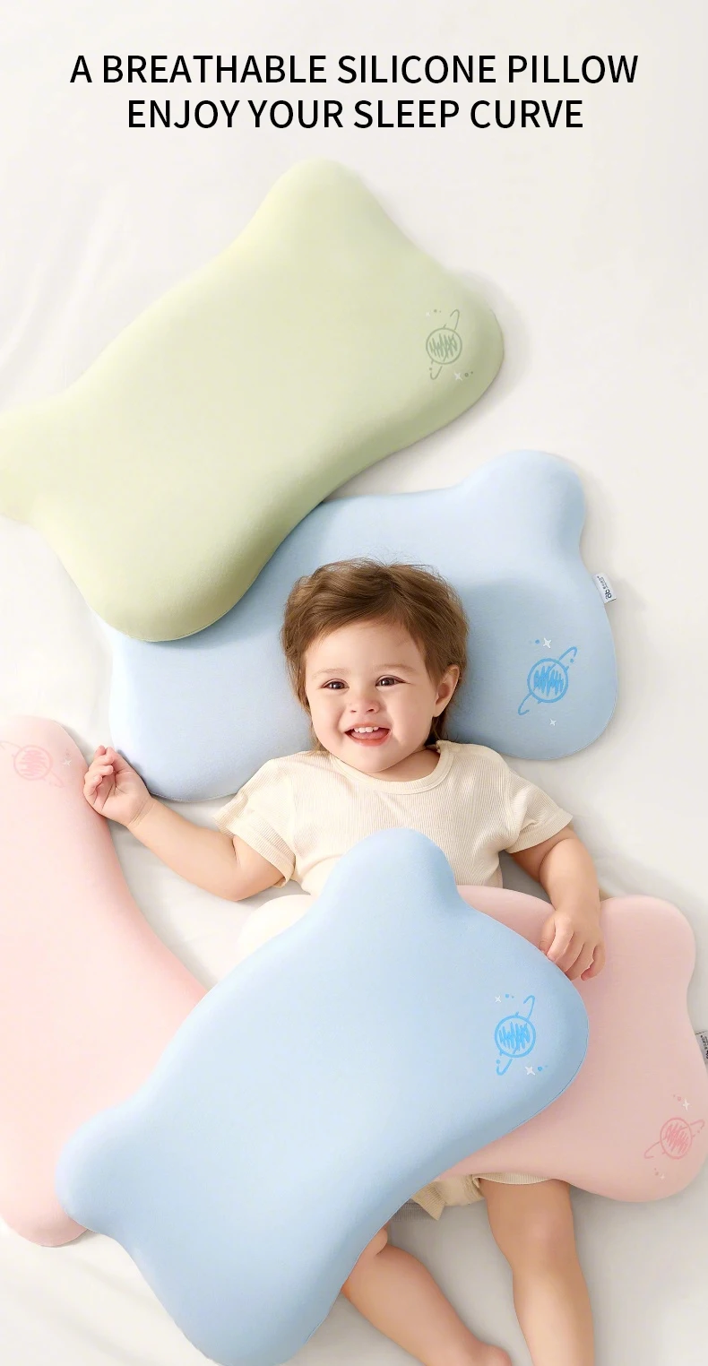 Breathable silicone pillow fits the natural sleep curve. Keeps kids comfy all night!