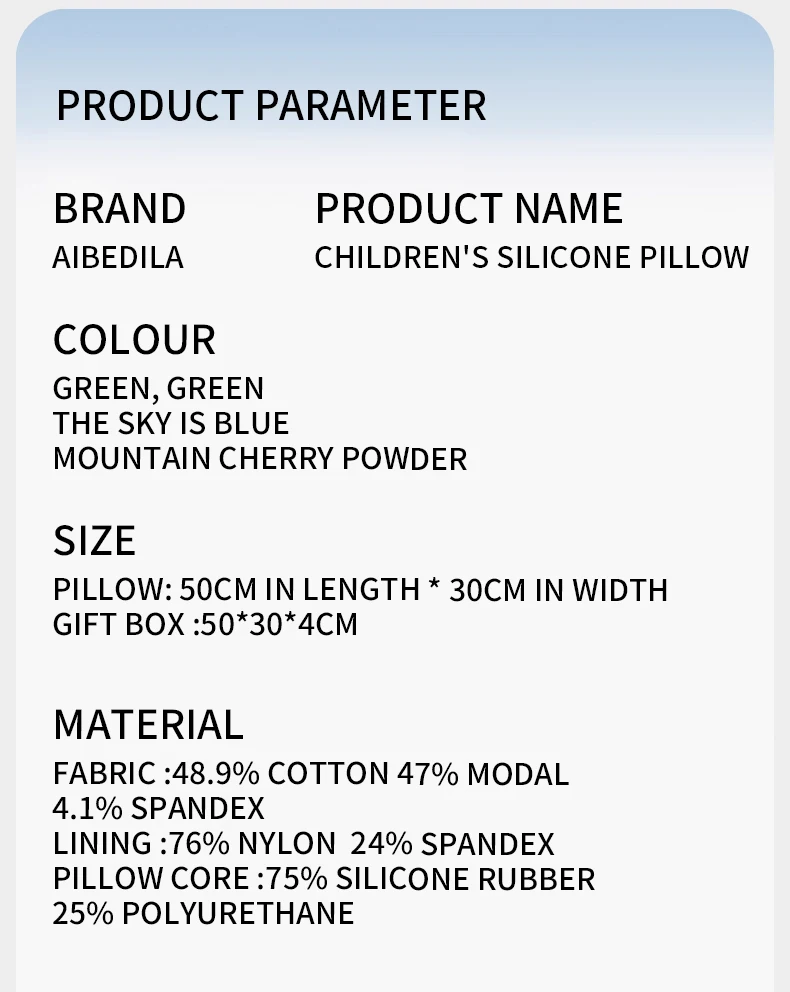 • Model Number: 0-6Years Old 4D Silicone Pillow
