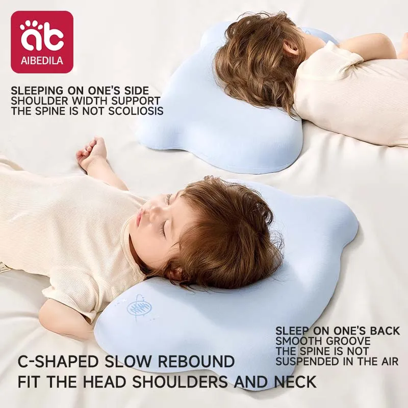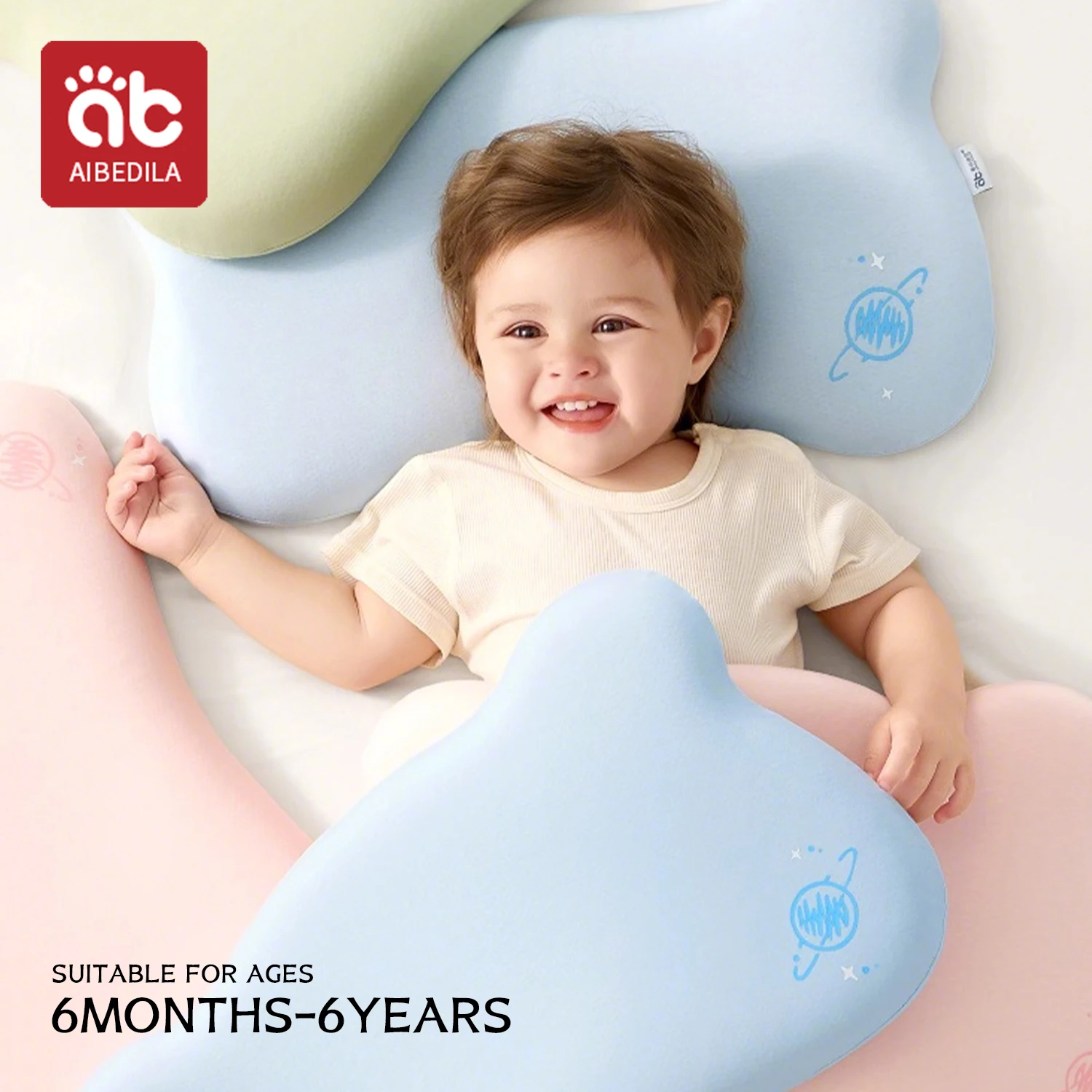 AIBEDILA 4D Silicone Children Pillow for Newborns Washable Neck Pillows for Sleeping Slow Rebound Baby Pillow Modal Pillowcase