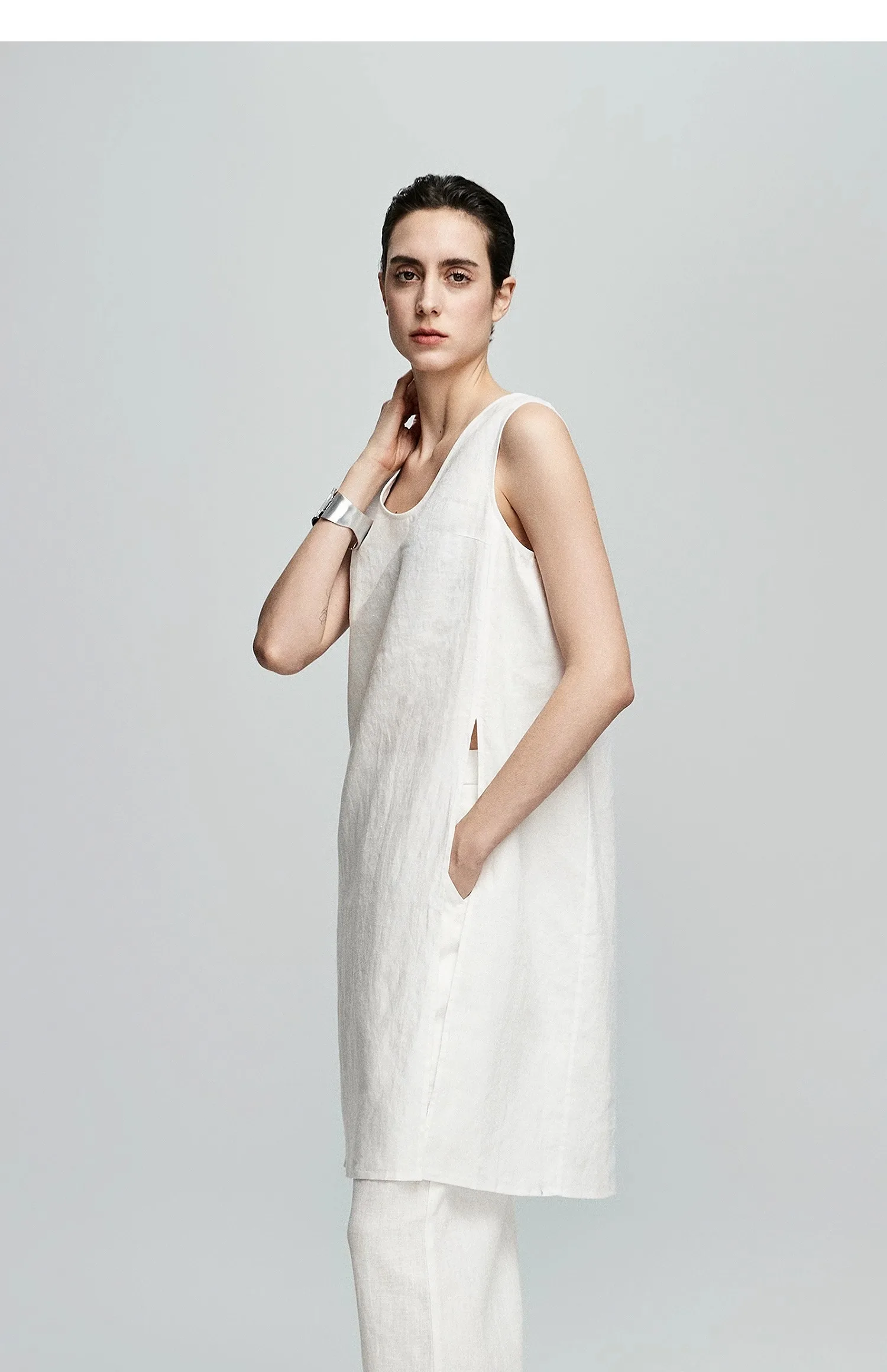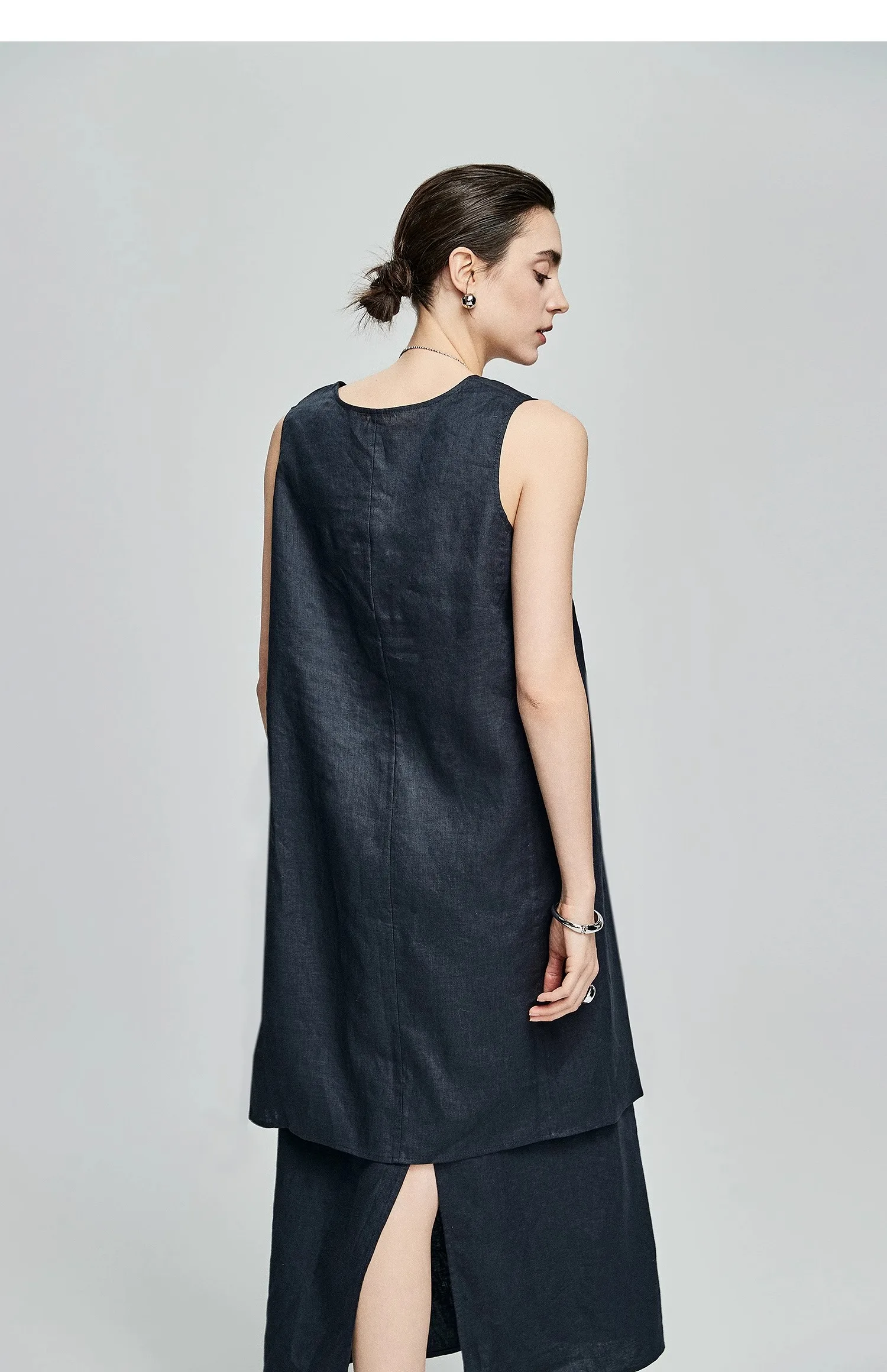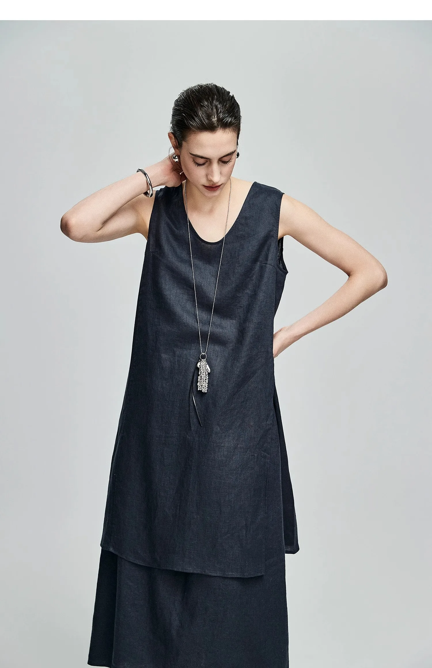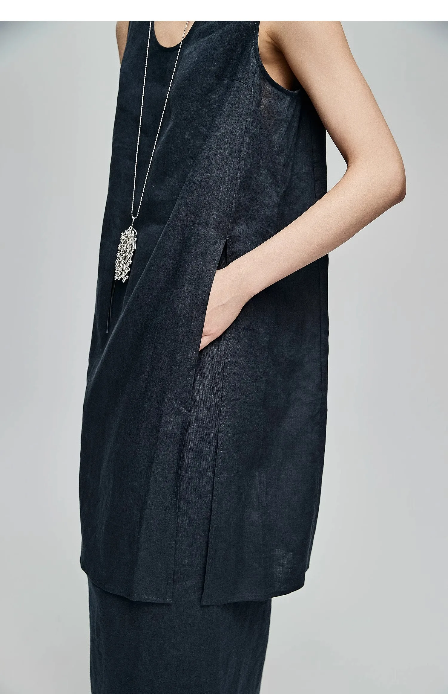 All-linen U-neck side-slit smock female Spring/Summer 2025 Sleeveless top