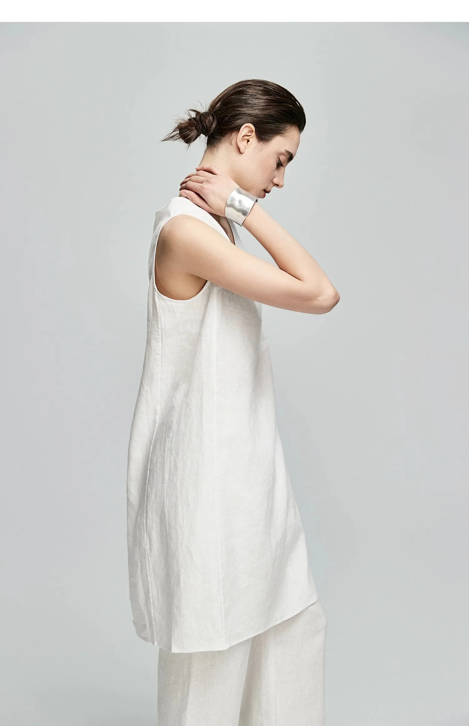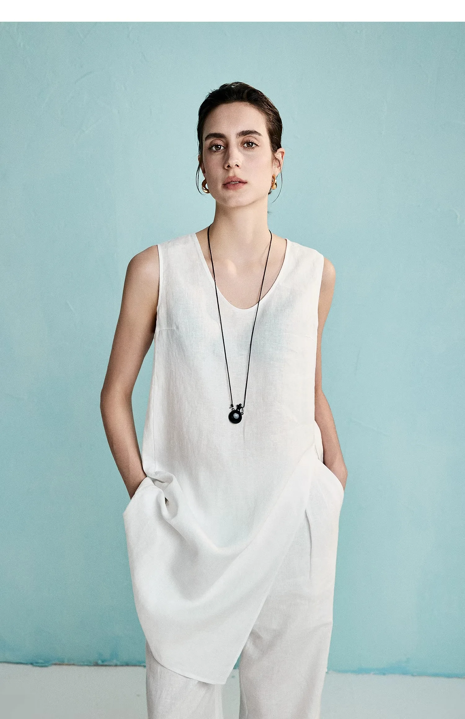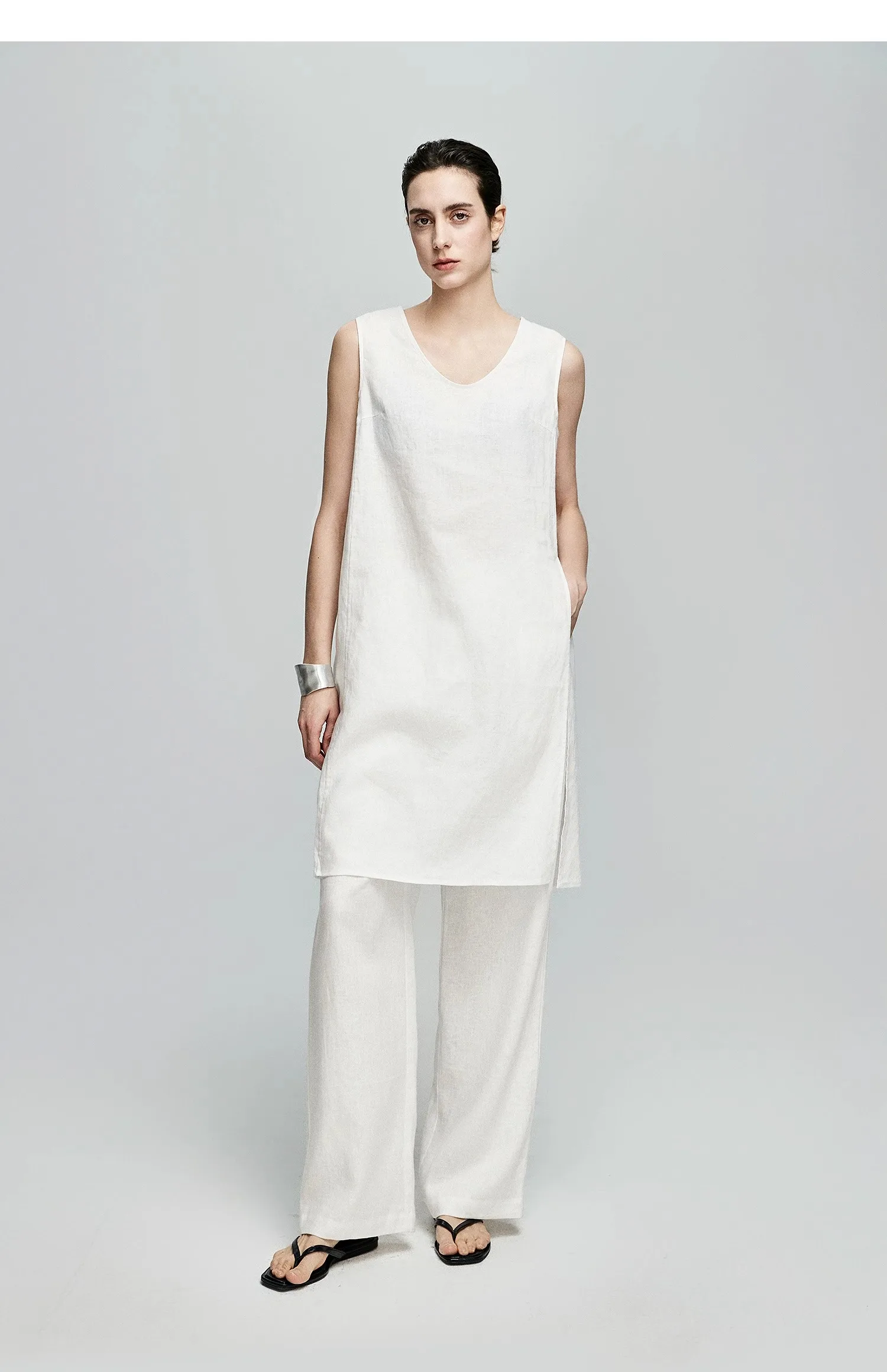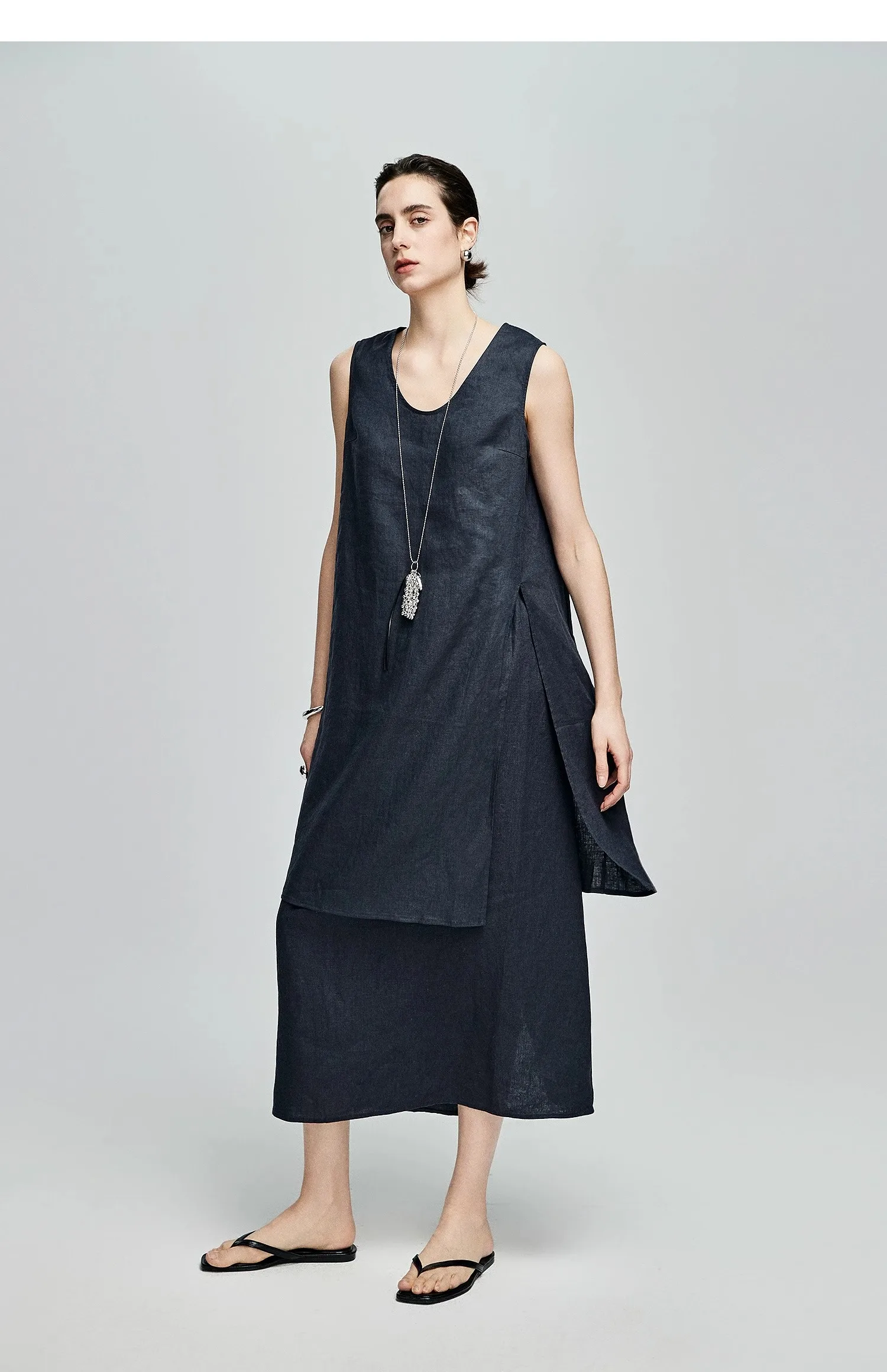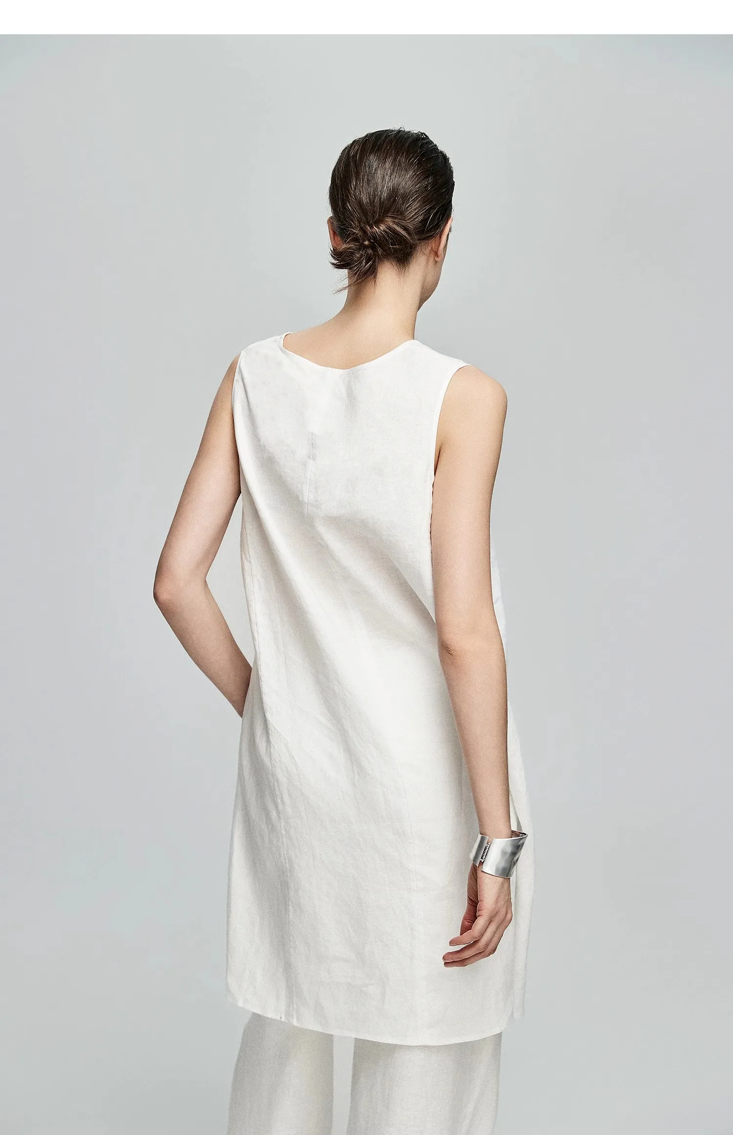 All-linen U-neck side-slit smock female Spring/Summer 2025 Sleeveless top