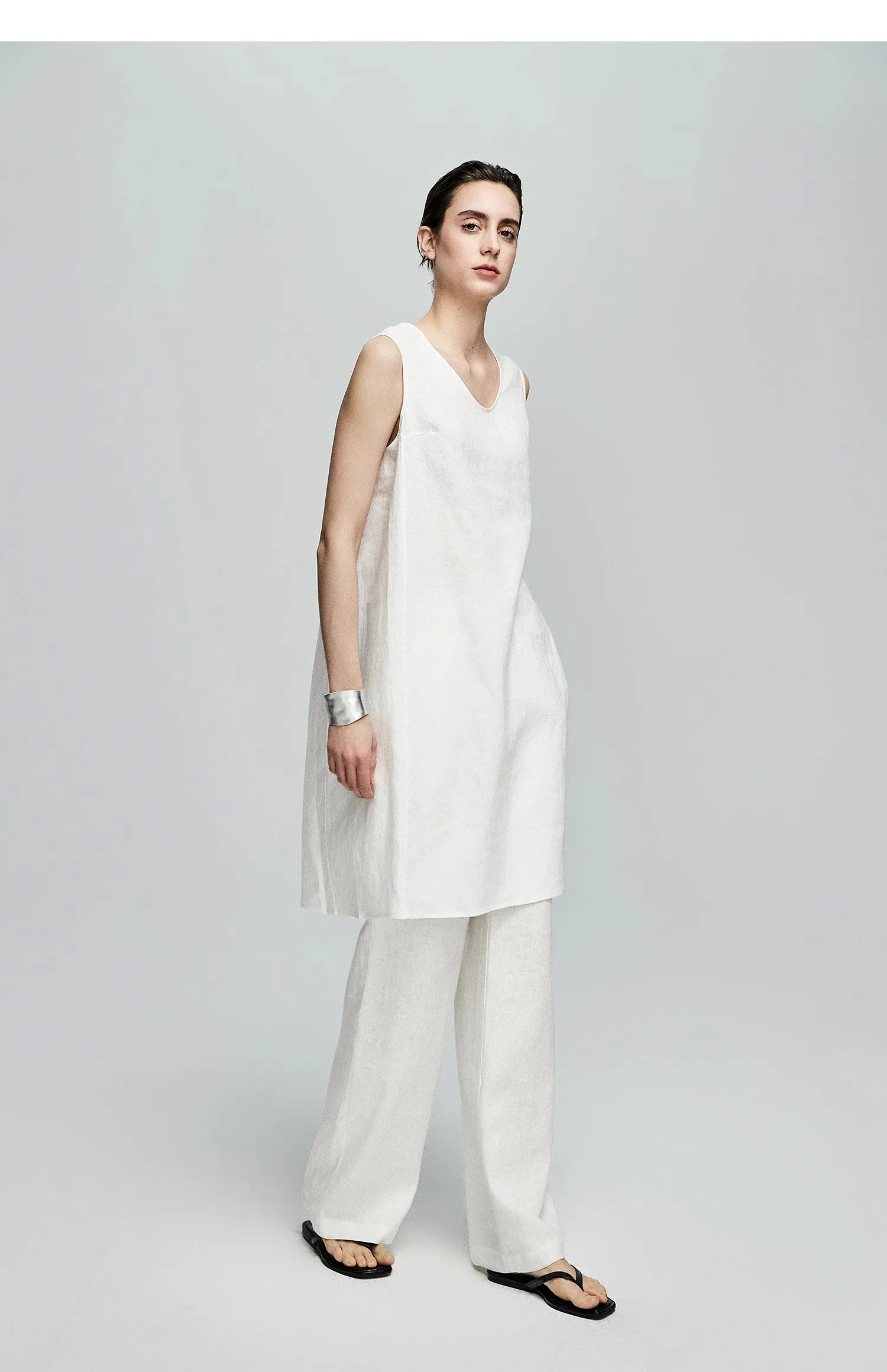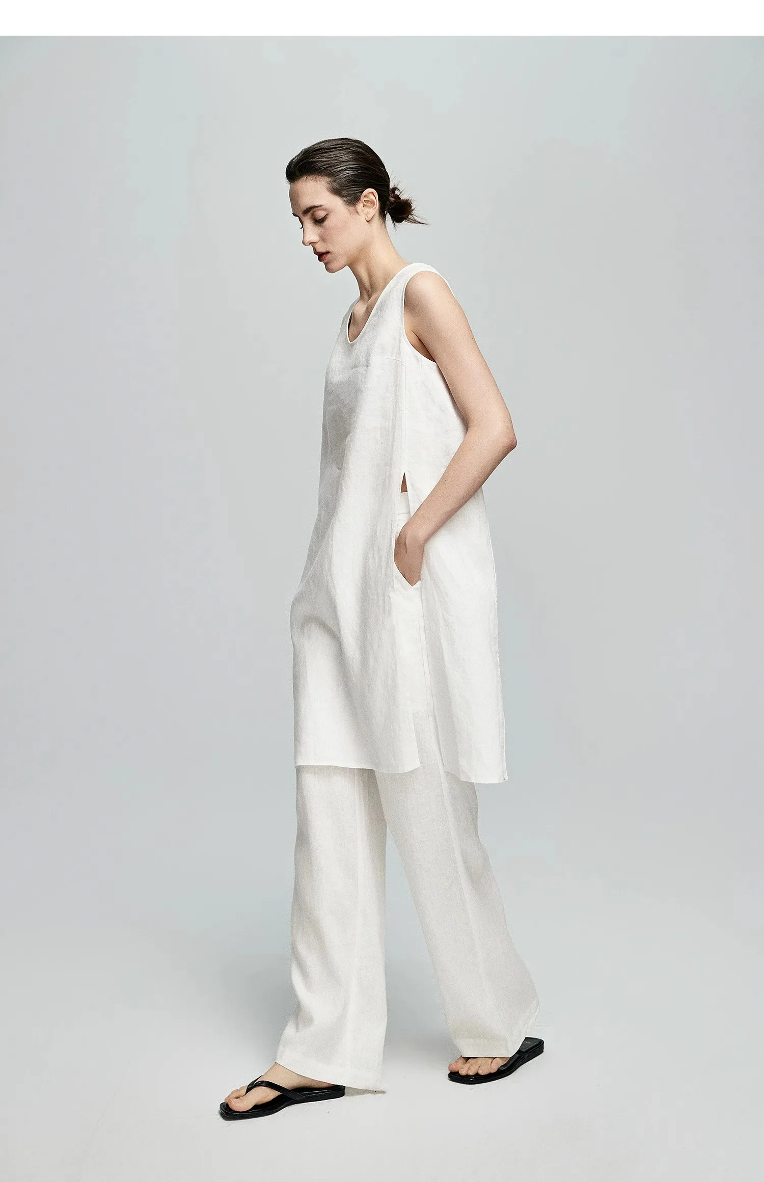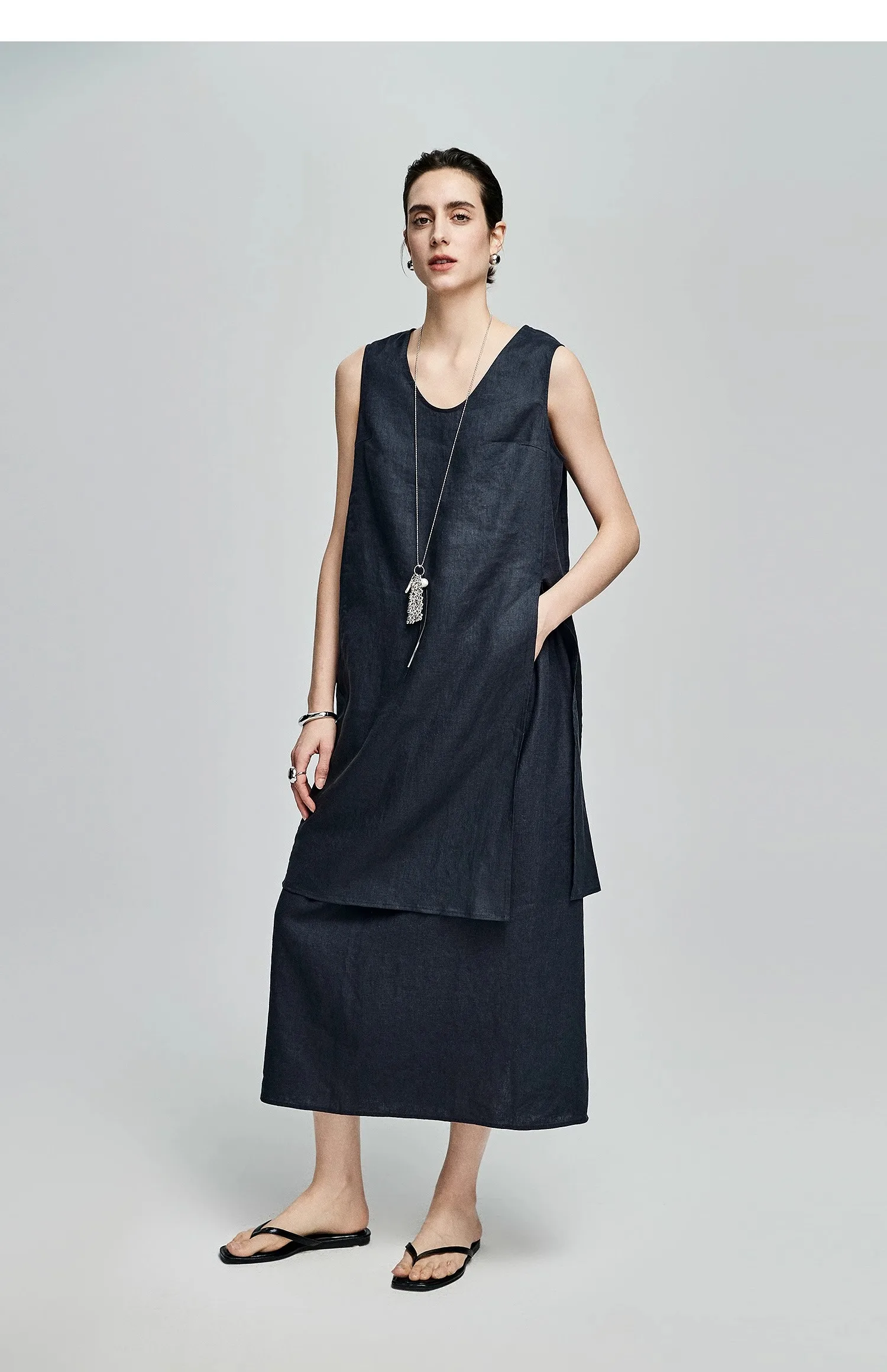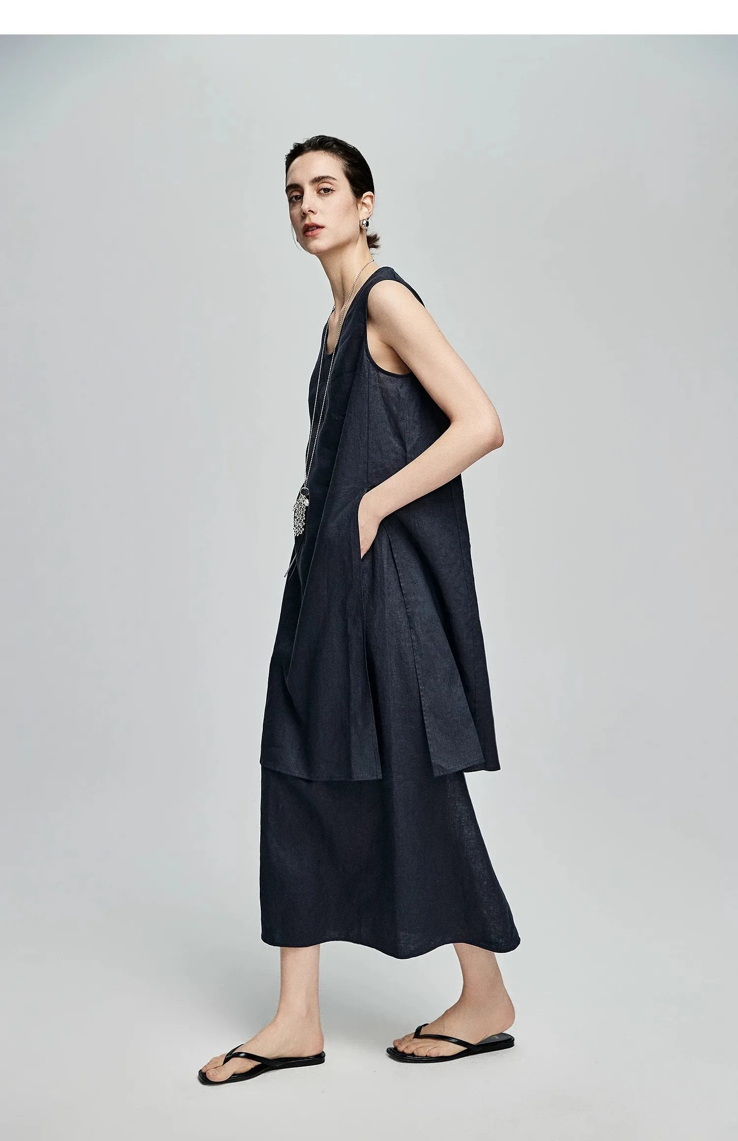 All-linen U-neck side-slit smock female Spring/Summer 2025 Sleeveless top