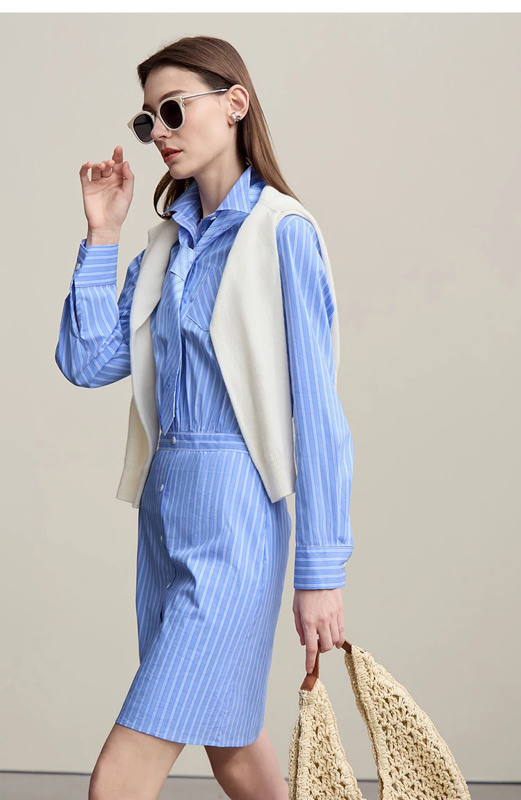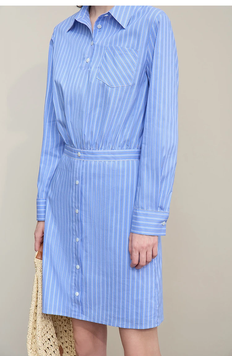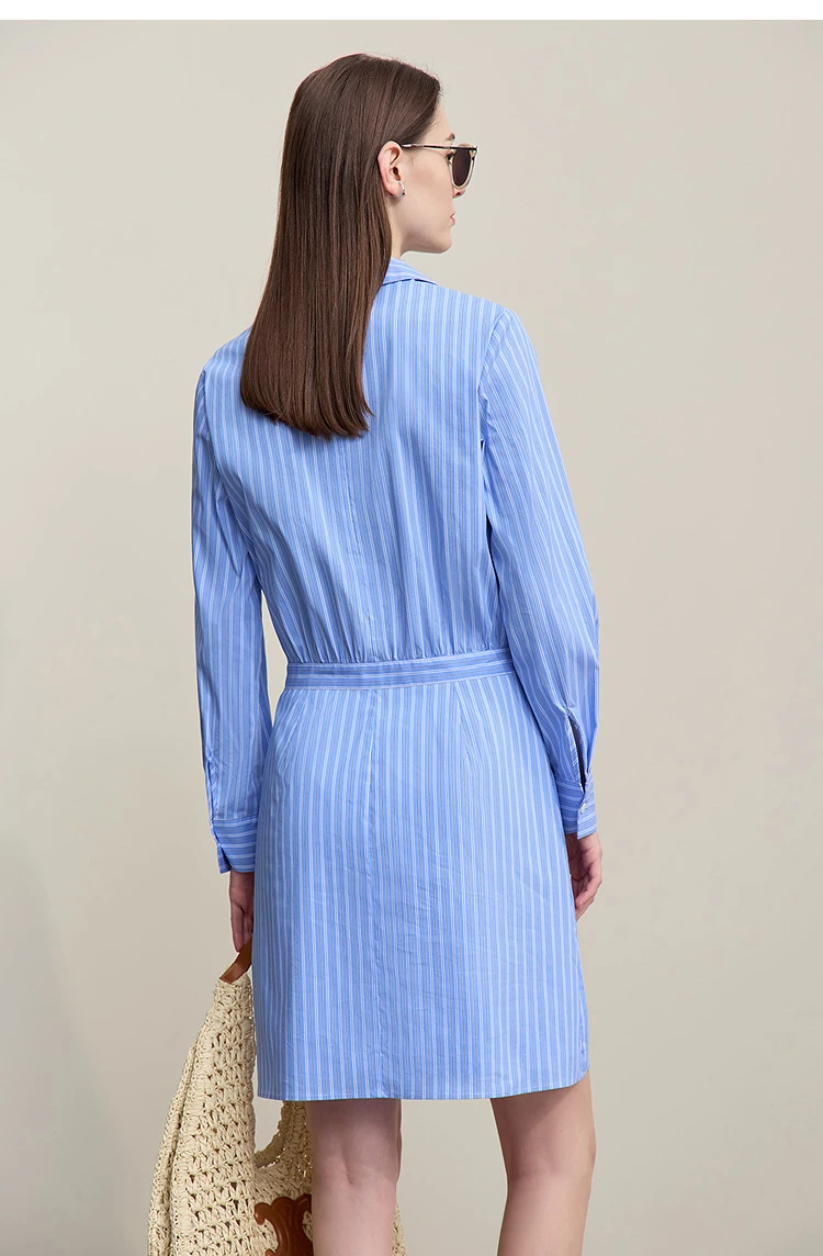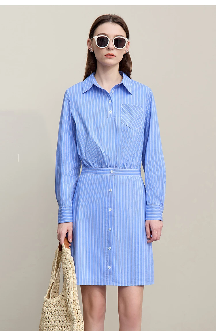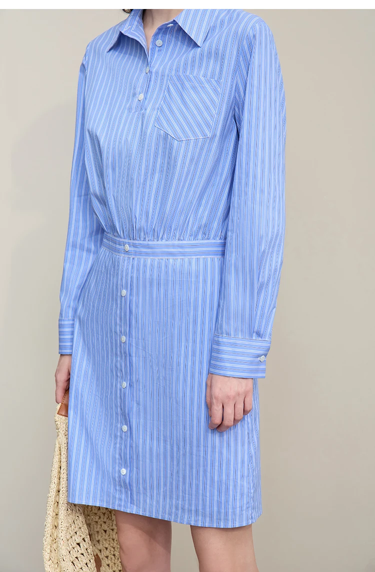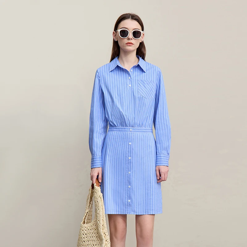 Amii Dresses For Woman 2026 Spring New Commuter Lapel Striped Half-open H-Line Dress Casual Long Sleeve Blouse Skirt 12641048