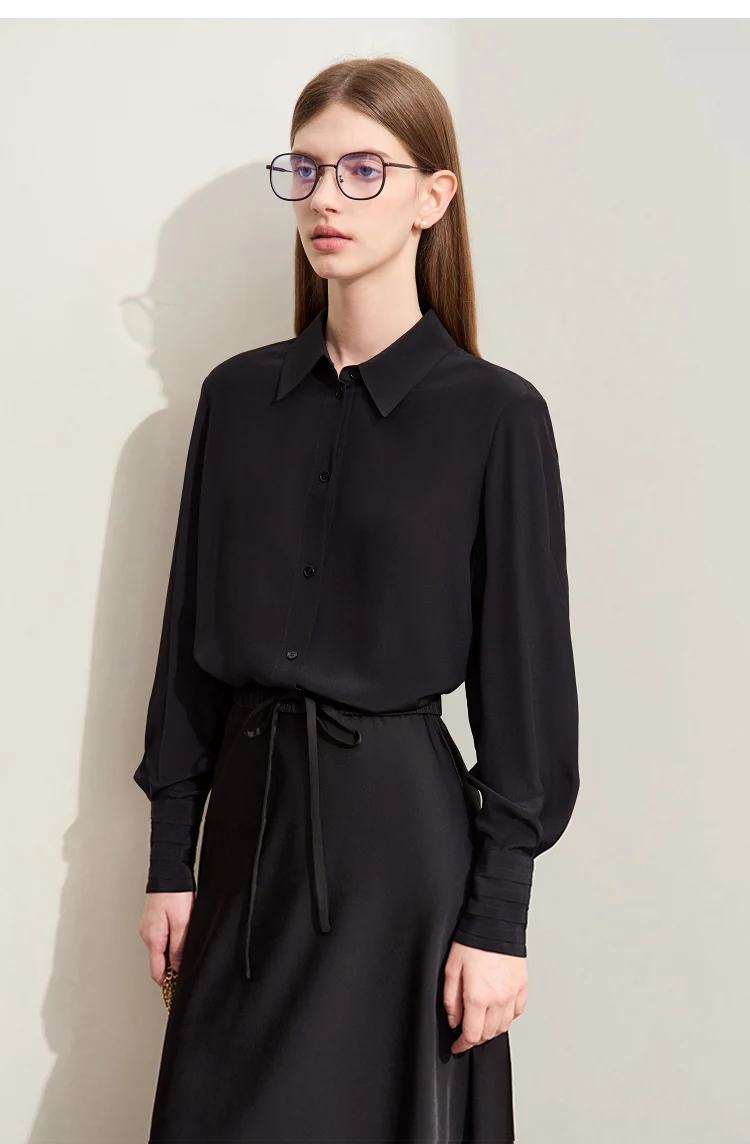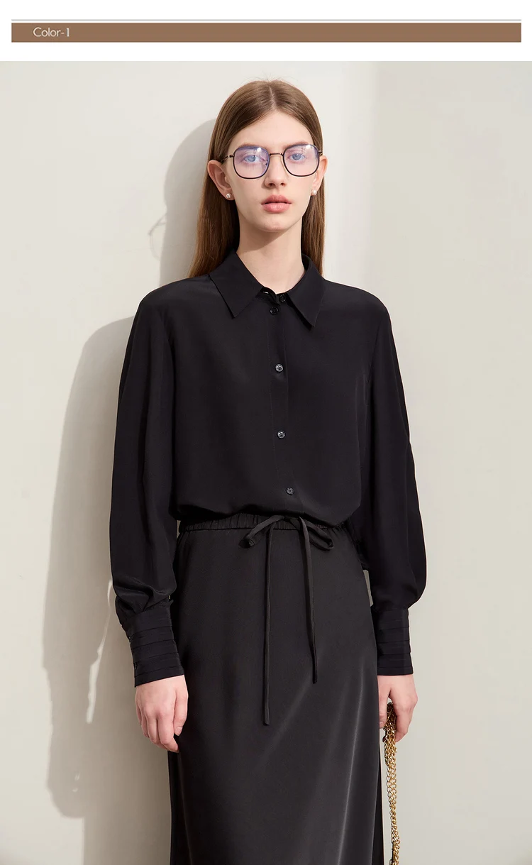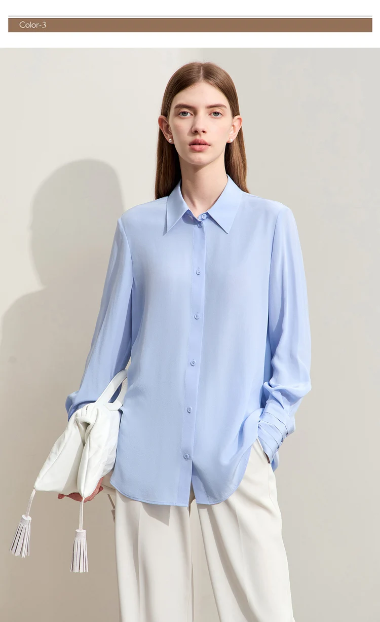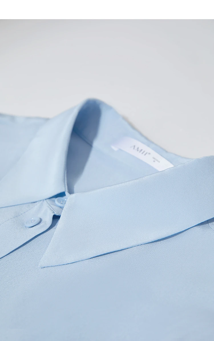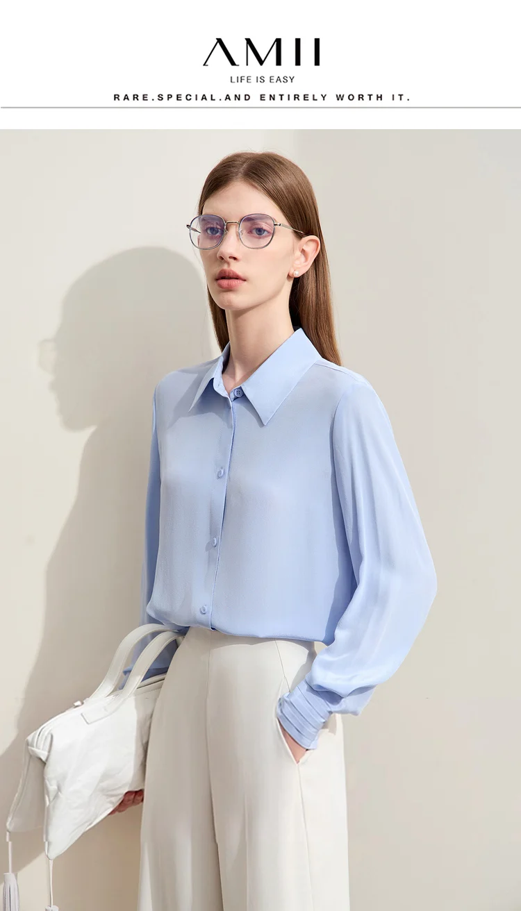 Amii Minimalism Women Shirt 2025 Autumn New Solid Office Lady Light Luxury Silk Mulberry Lapel Shirts & Blouses Female 12422173