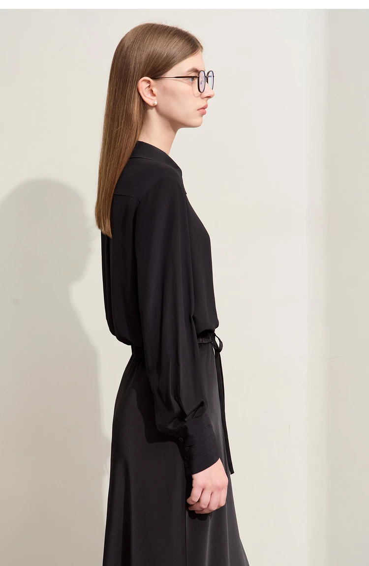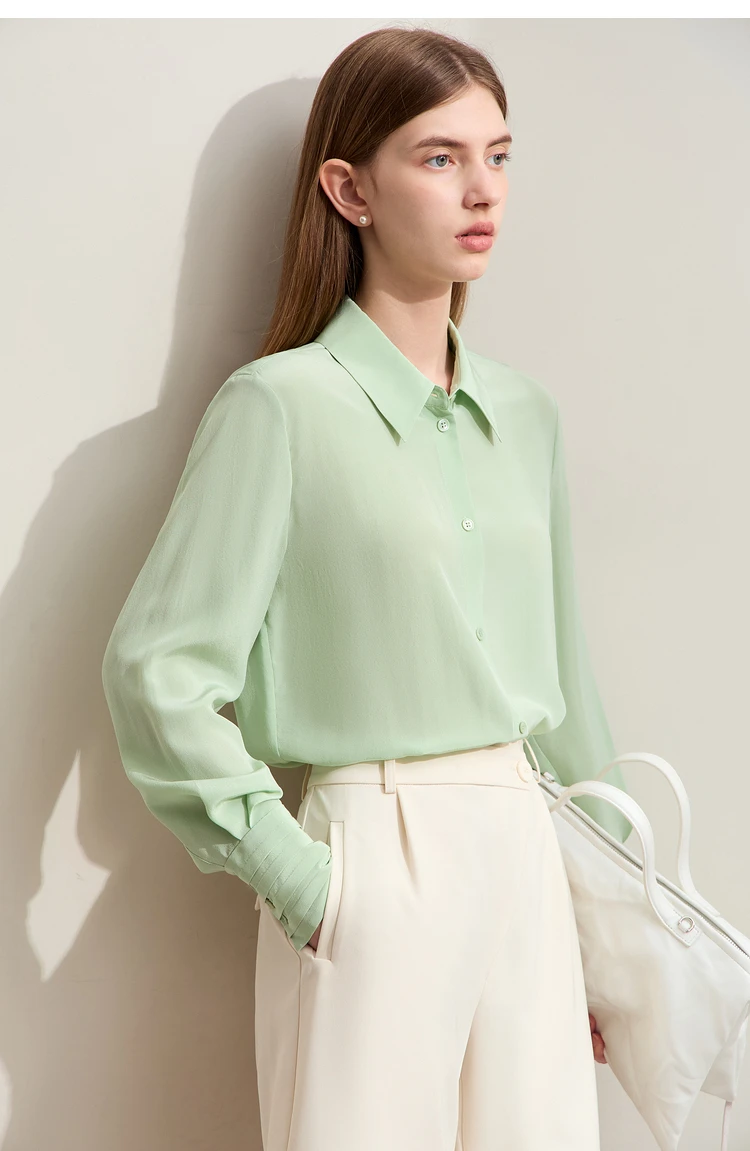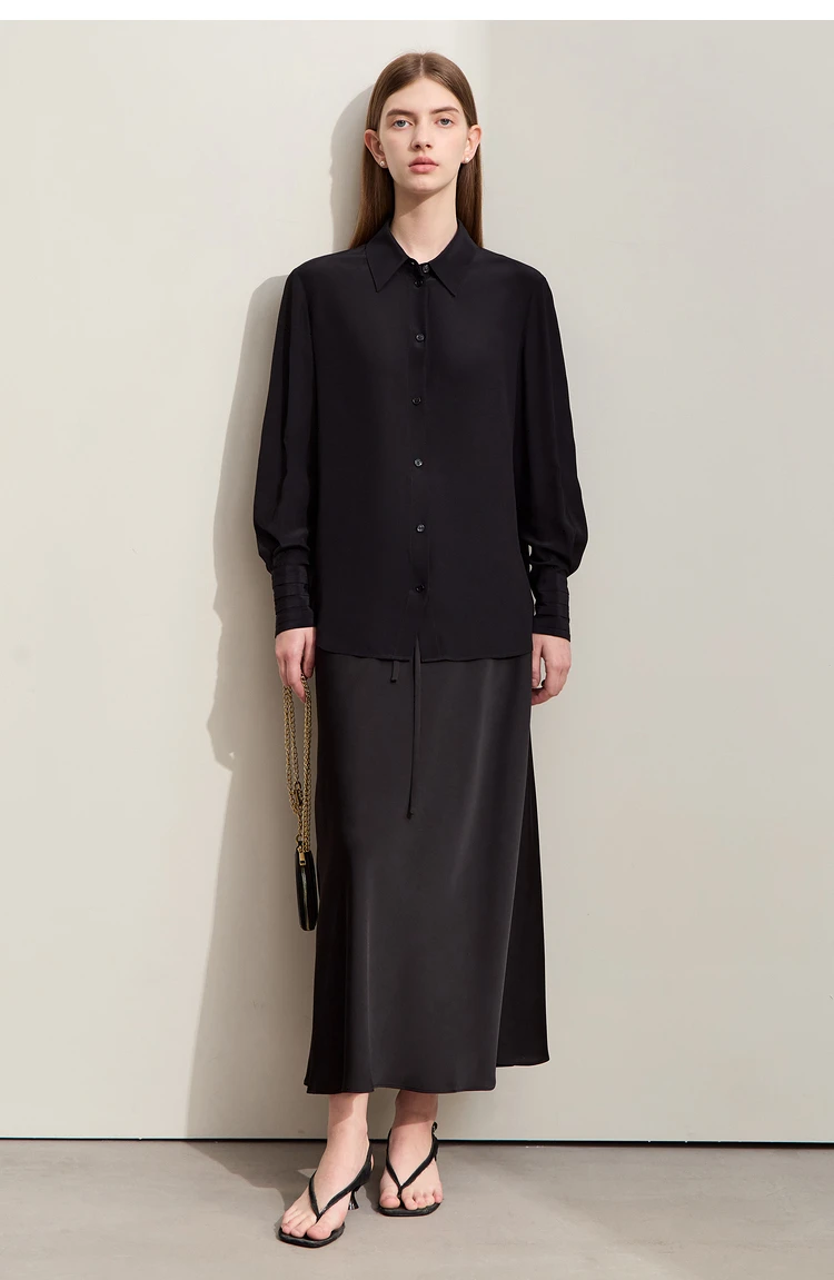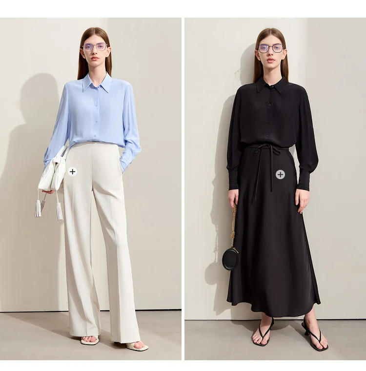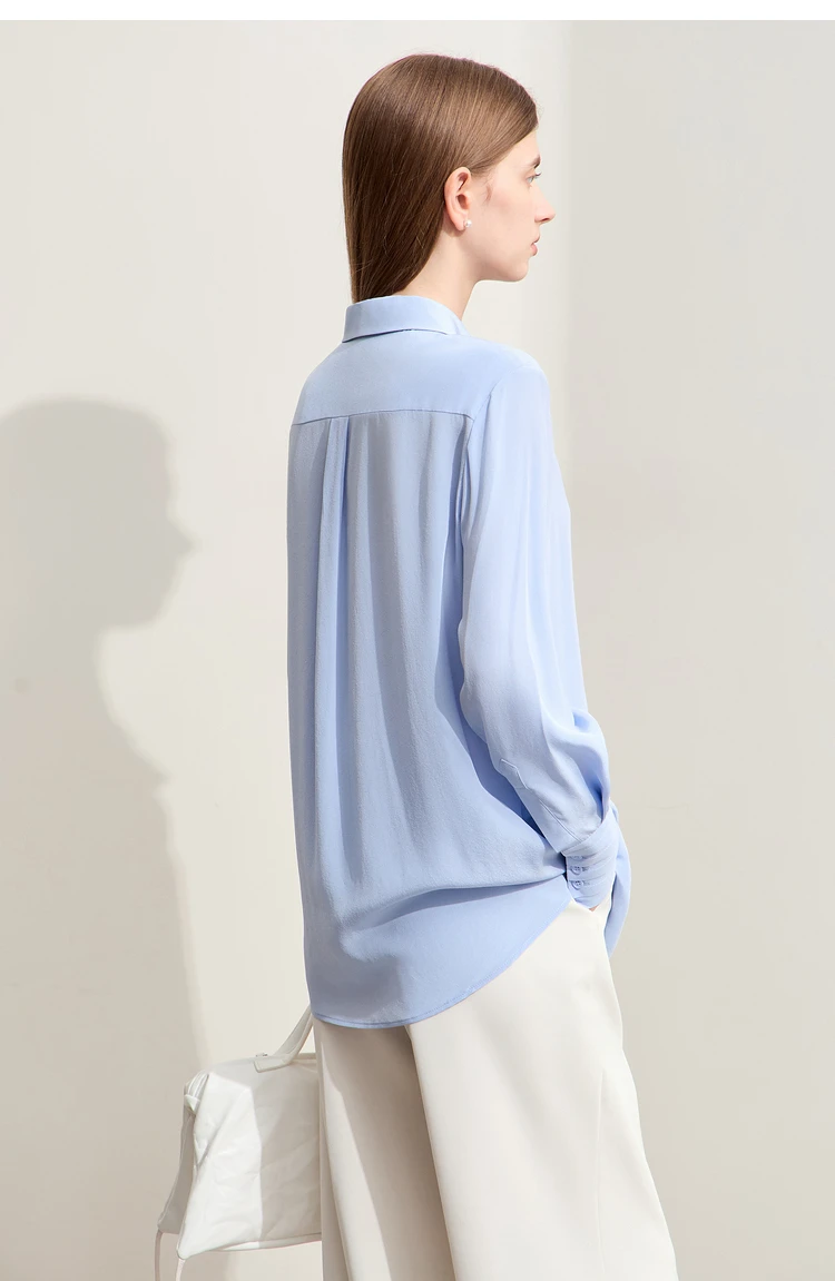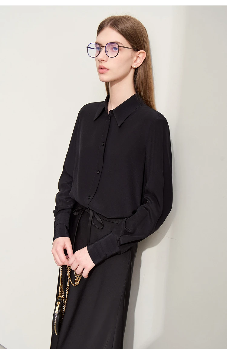 Amii Minimalism Women Shirt 2025 Autumn New Solid Office Lady Light Luxury Silk Mulberry Lapel Shirts & Blouses Female 12422173