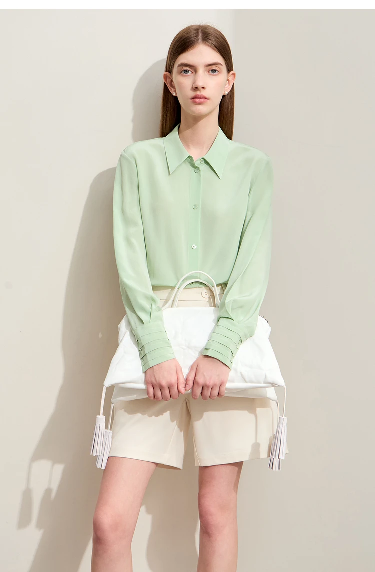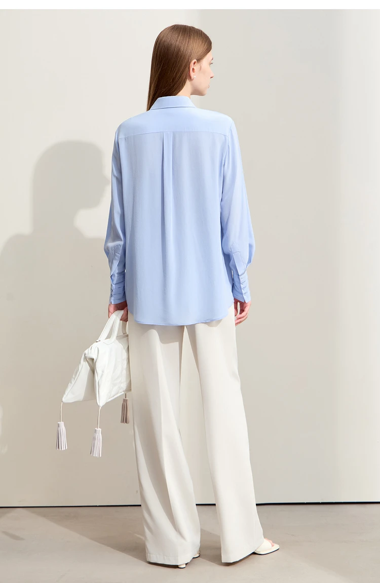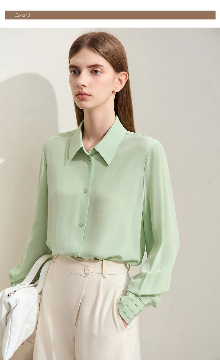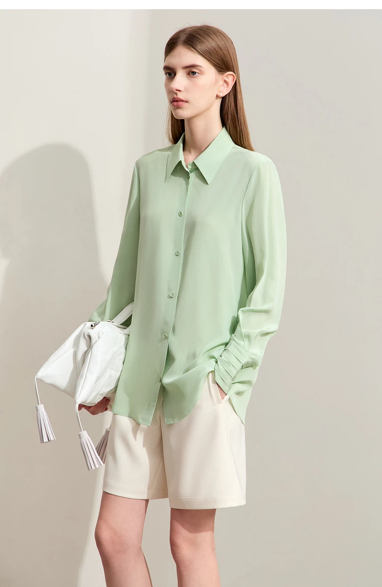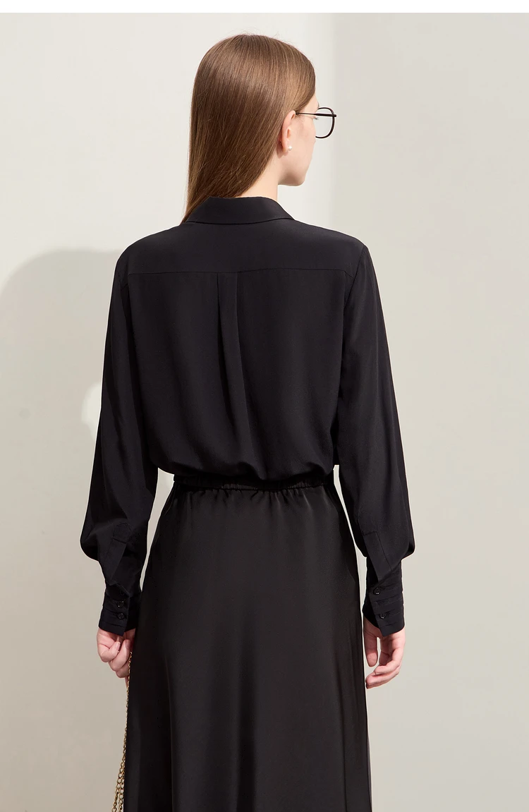 Amii Minimalism Women Shirt 2025 Autumn New Solid Office Lady Light Luxury Silk Mulberry Lapel Shirts & Blouses Female 12422173
