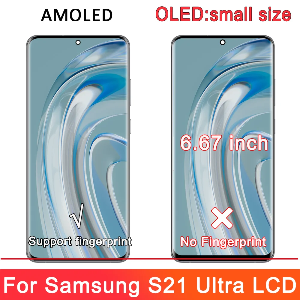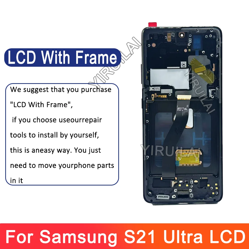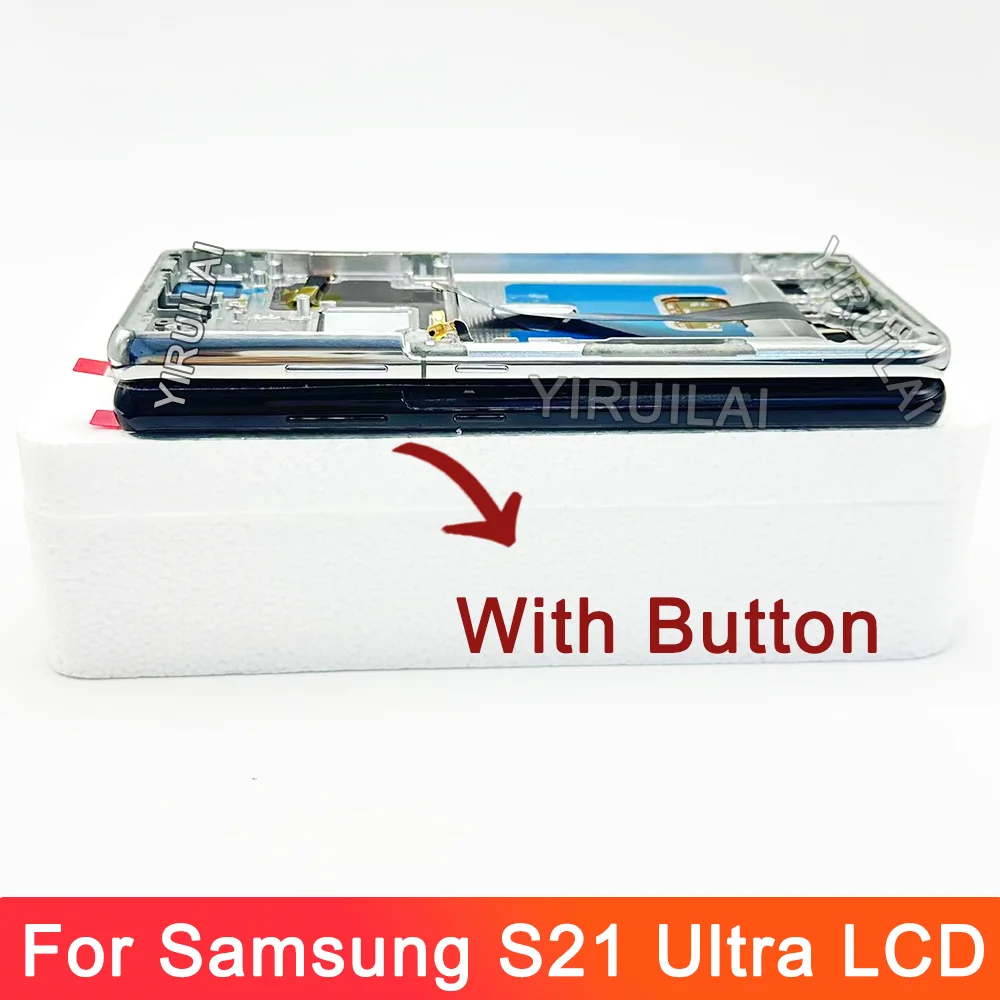 AMOLED S21 Ultra Screen with Frame for Samsung Galaxy S21 Ultra 5G G998B G998B/DS Lcd Display Touch Screen Digitizer Assembly