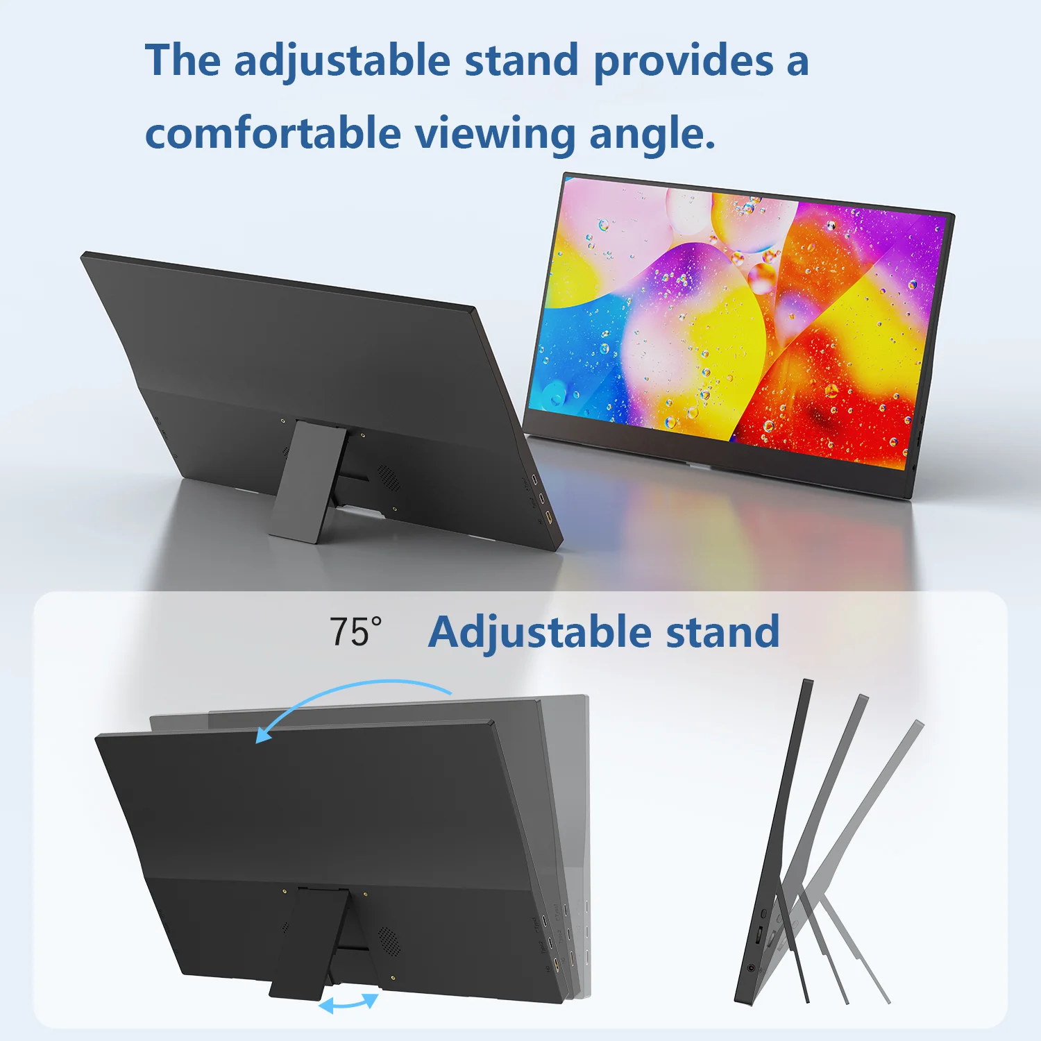Amoudo 15.6 Inch Portable Monitor 1920x1080P Extend Display IPS LCD Panel Penhole Stand VESA USBC Mini HDMI Mobile Display