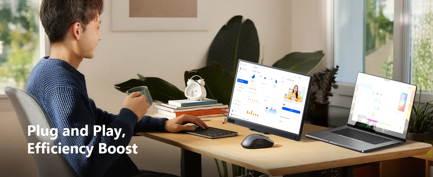 Excellent monitor for games without delay. Instant use without drivers, 60Hz fast response allows you to enjoy fast moving content like FPS games and action movies in comfort. With a large 15.6 inch screen, it weighs about 22.0 oz (623 g), and 0.4 inch (11 mm) thin slim design that can be easily stored in a travel The 2025 model has a unique pen hole that allows you to insert the pen to stand the monitor. Supports landscape and portrait viewing