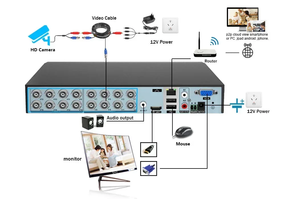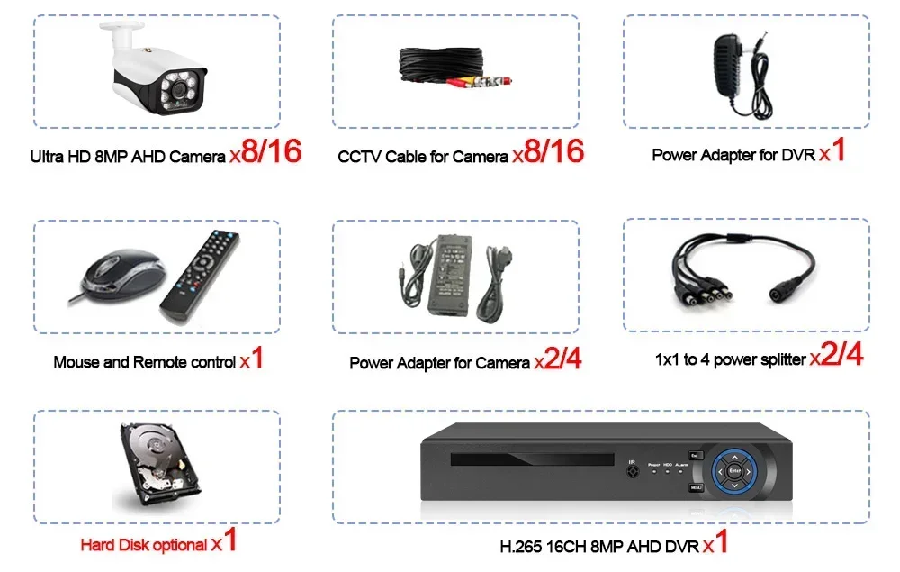 - AHD DVR Resolution: H.265 16CH 4K AHD DVR