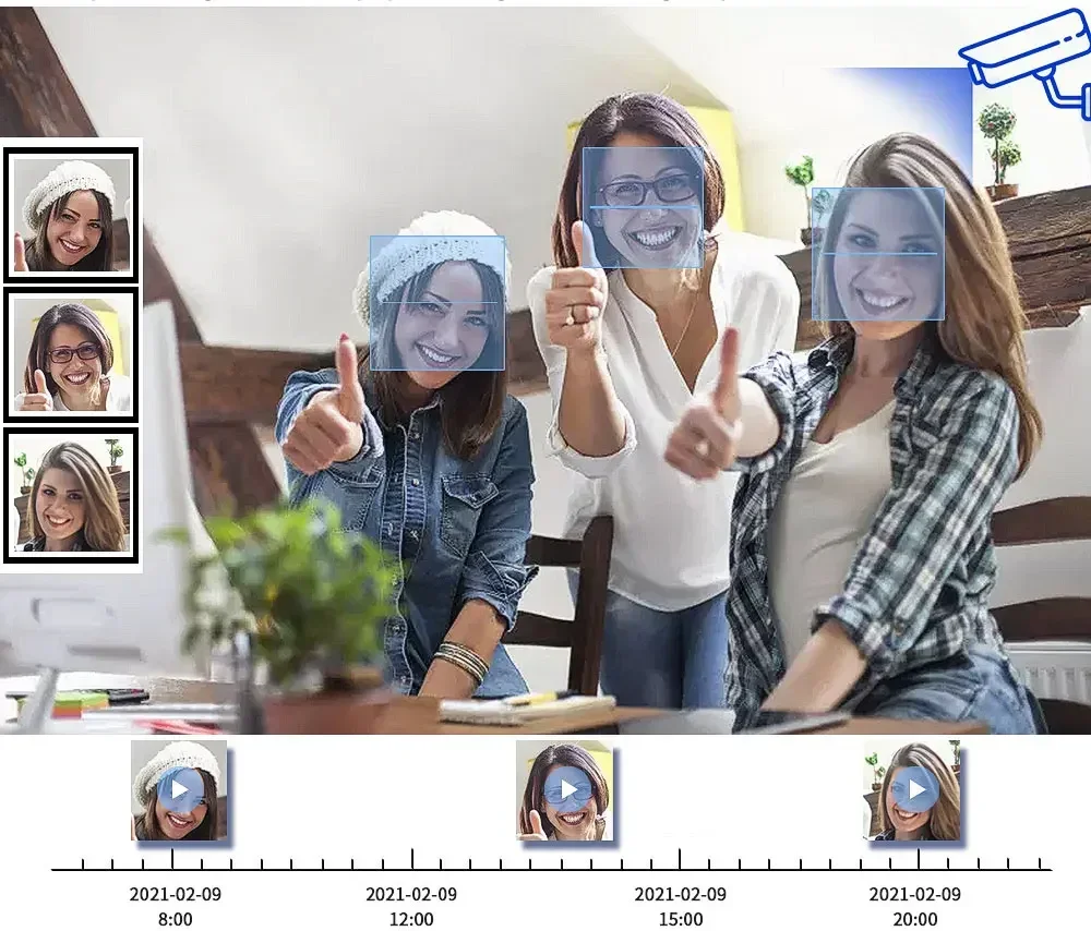 Face Detection and Face playback and Face Record;Quickly capture face images and quickly play back face videos;Face Detection:automatically capture face images;Intelligent Face Playback: Intelligent Face video playback, saving time, not missing every details.