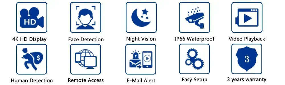 3.Support Face Detection,Face Playback,Provides ultra high definition surveillance video images, providing maximum detail and clarity available;