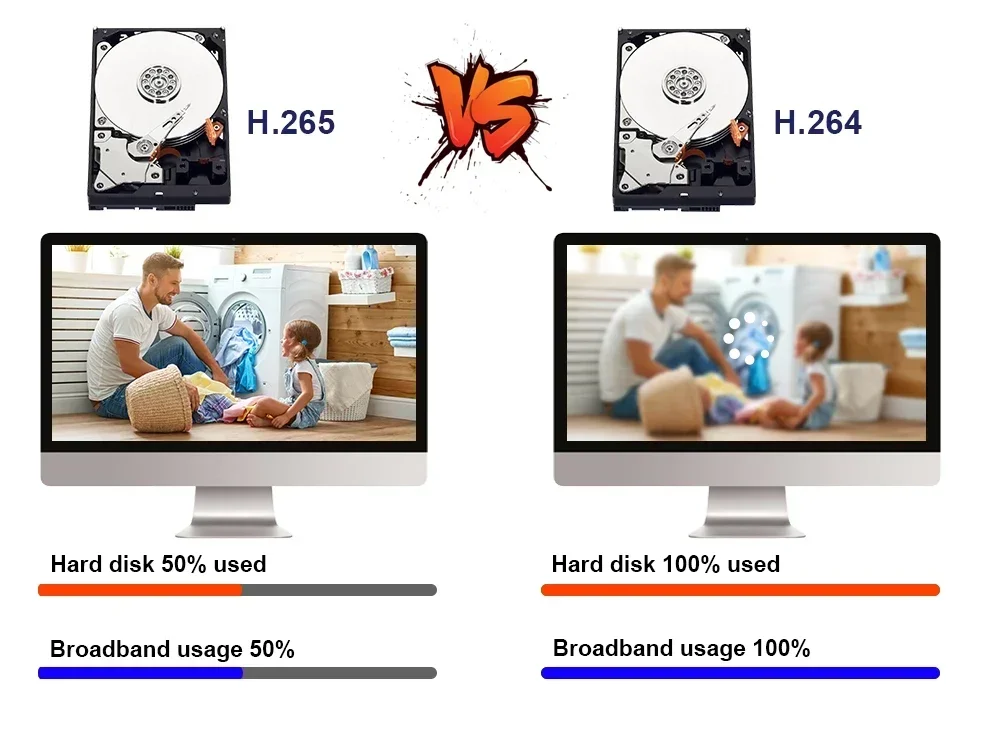 H.265 More Clear , HD resolution offer you best image quality in a lower bit rate.Save more storage space,can reduce 40%-50% file size,save your HDD storage space and reduce your purchase cost.
