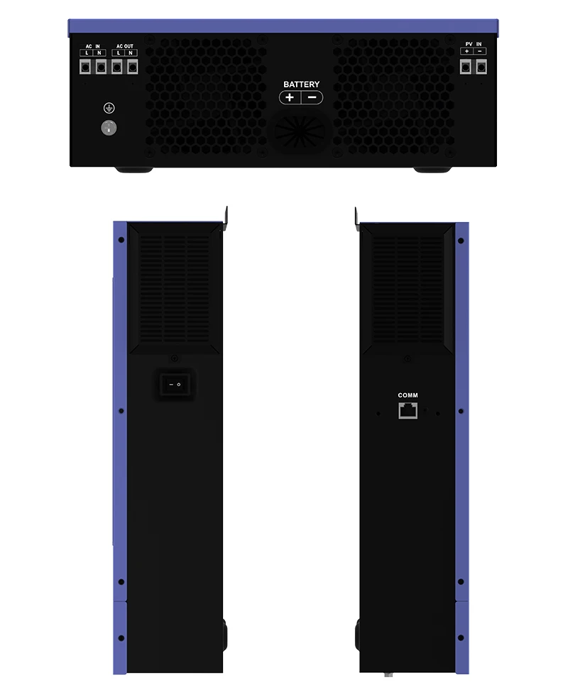 This is a multi-function inverter/charger, combining functions of inverter, solar charger and battery charger to offer uninterruptible power support with portable size. Its comprehensive LCD display offers user-confiqurable and easy-accessible button operation such as battery charging current, AC/solar charger priority, and acceptable input voltage based on different applications.