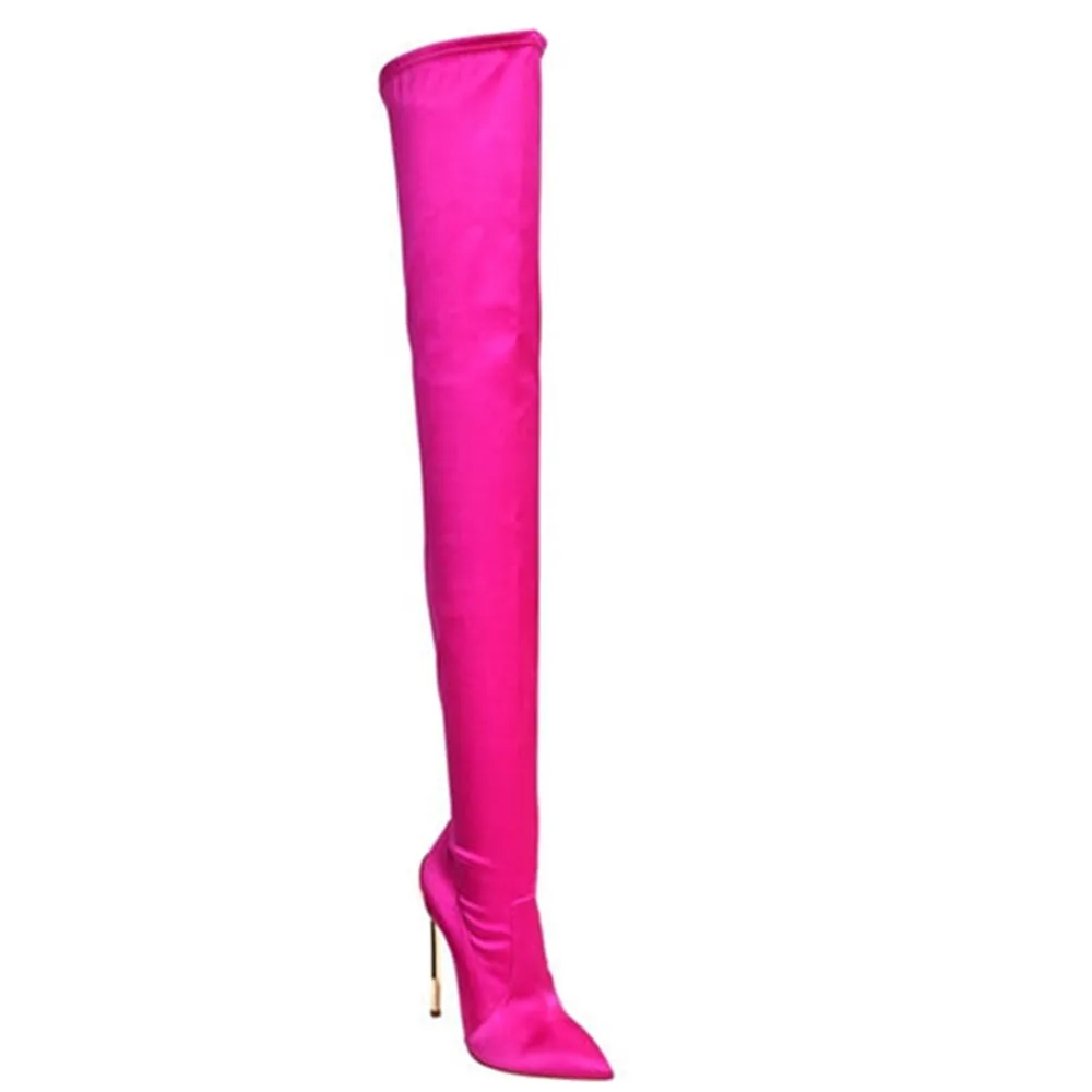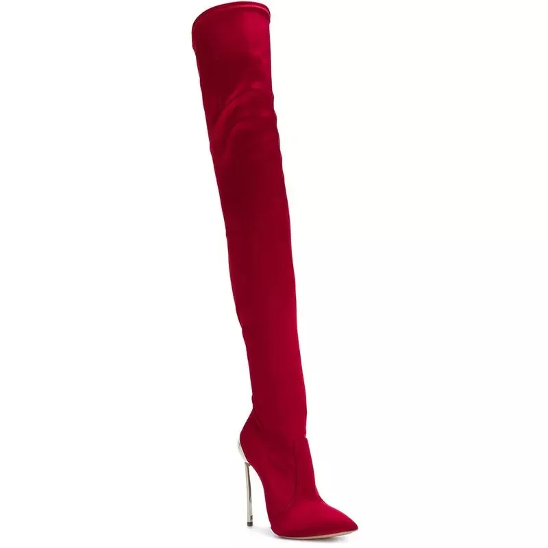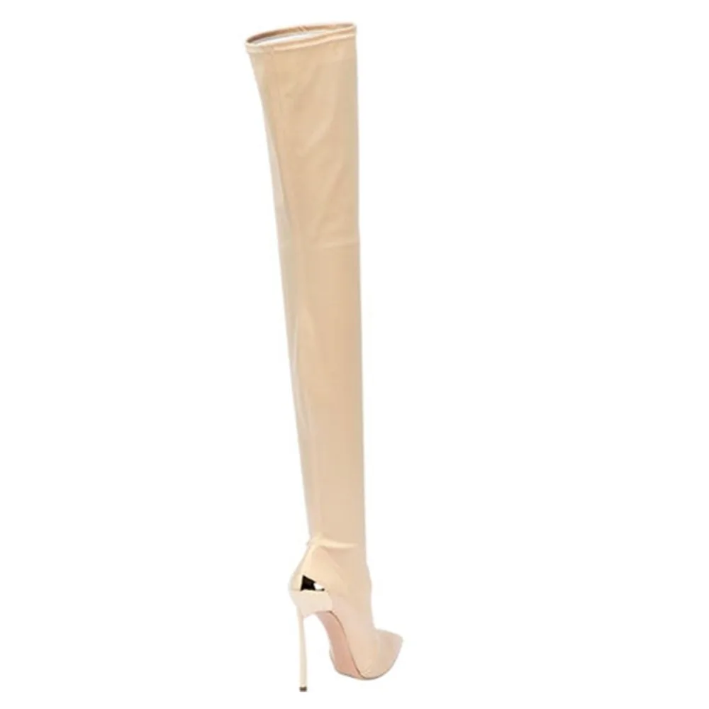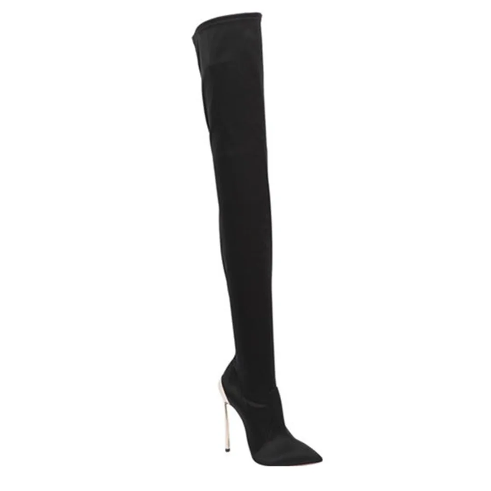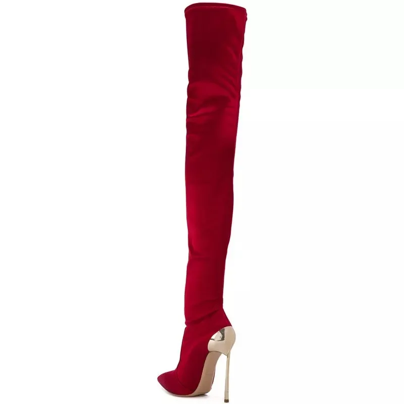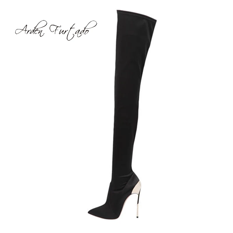 Arden Furtado 2025 Autumn Stretch boots Metal stiletto heels Over the knee boots Pointed Toe Super high heel thigh high boots 41