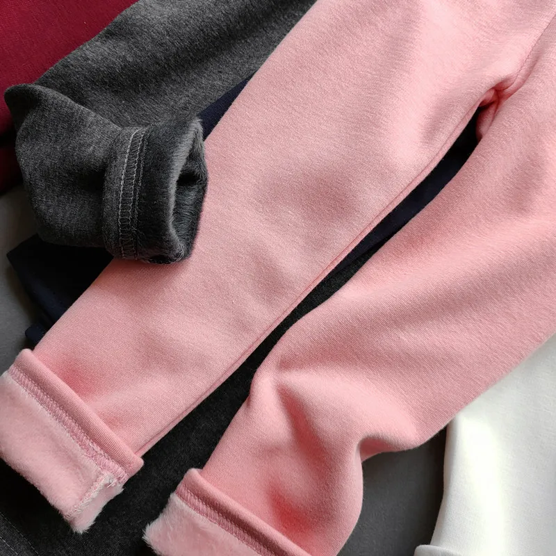Autumn Winter Girls Fleece Leggings Kids Slim Thermal Trousers children’s Solid Color Plus Velvet Warm Pants