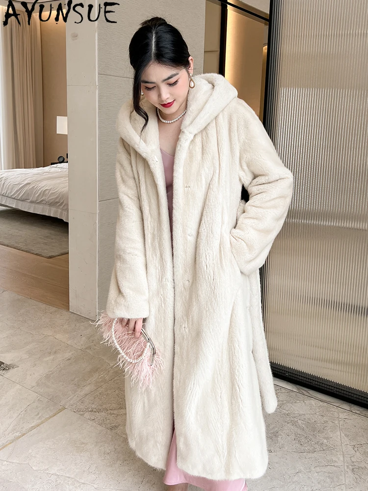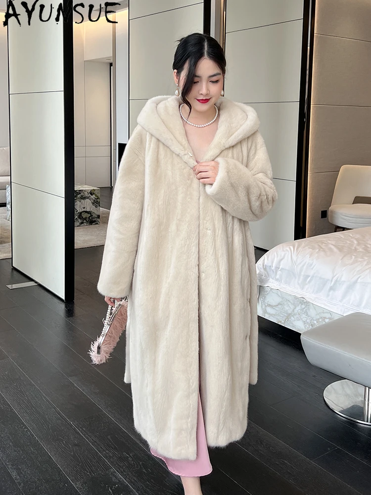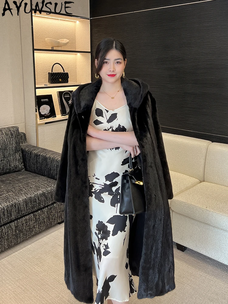 AYUNSUE Natural Velvet Mink Fur Coat for Woman Luxury Winter Fur Jacket for Woman Clothes High Quality Outerwears Кофта С Мехом