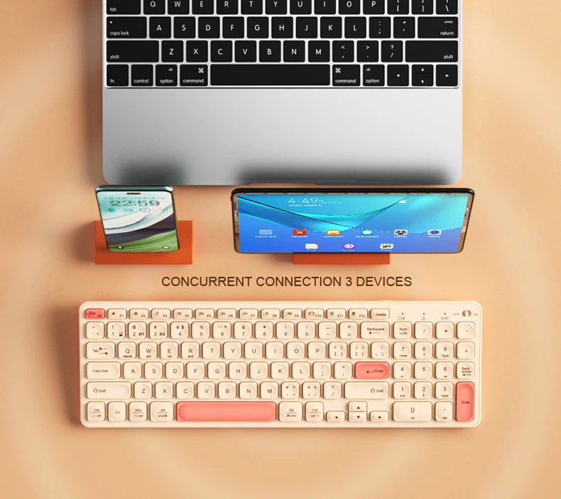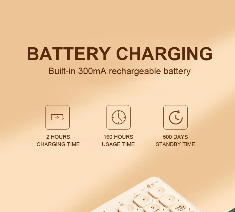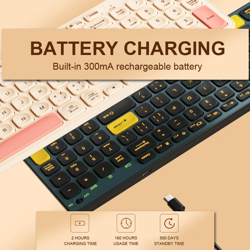 Charging 2 Hours, Working Last 200 Hours, Rechargeable keyboard , 3 Devices Connected