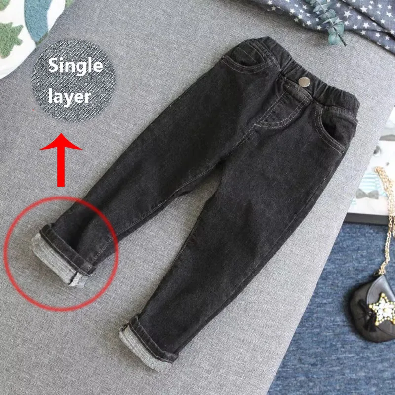 Baby Kids Spring Autumn Winter Thick Warm Jeans With Fleece For 1-7 Years Boys Girls Casual Denim Pants Kids Children Trousers