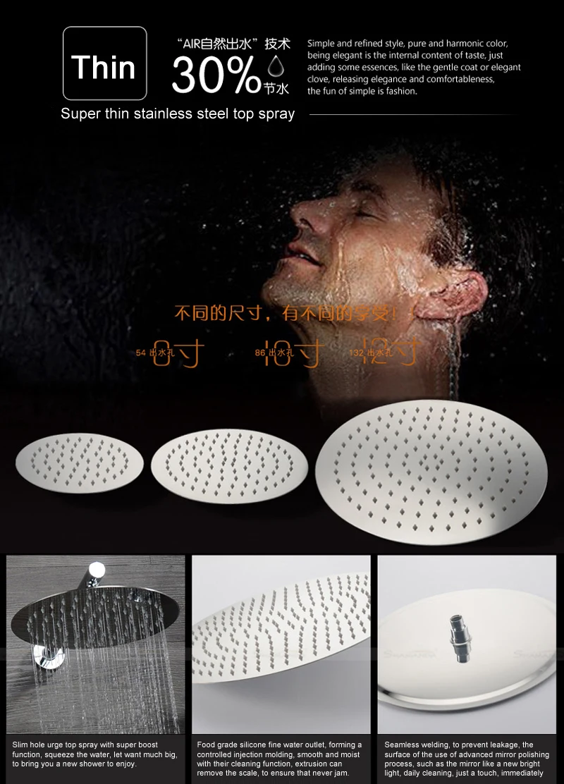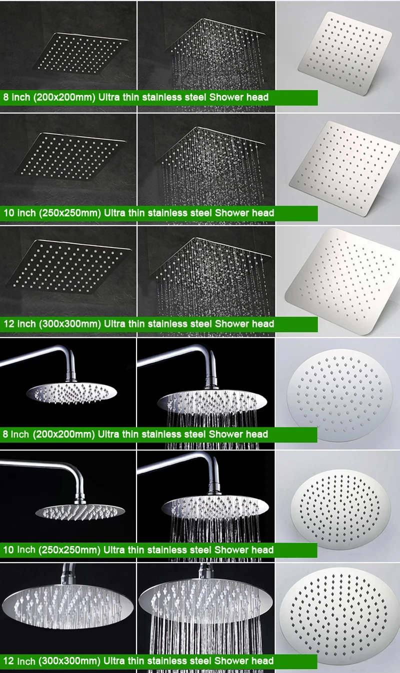 BAKALA Round & square 8/10/12 inch Stainless Steel Showerhead Bathroom Shower Faucet Head Rain Ultrathin Shower Head LC1010