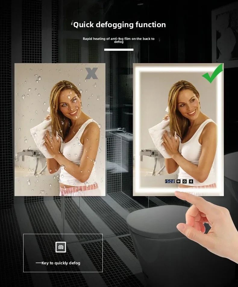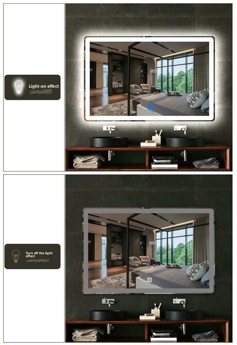 Bathroom Luminous Makeup Wall-mounted Mirror Clear Anti-fog Bathroom Light Mirror Vanity Multifunctional Smart Mirror Led