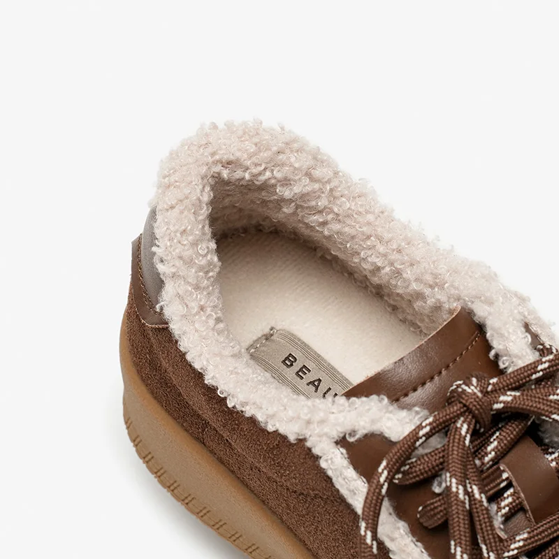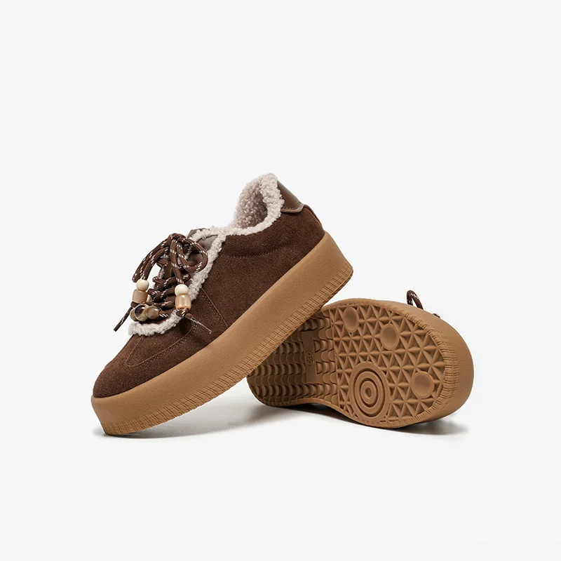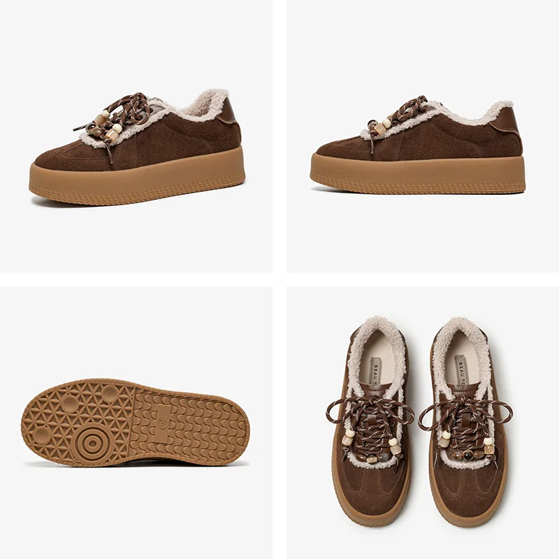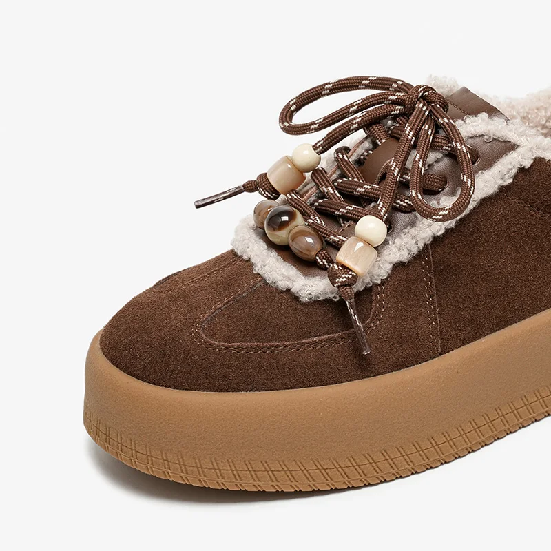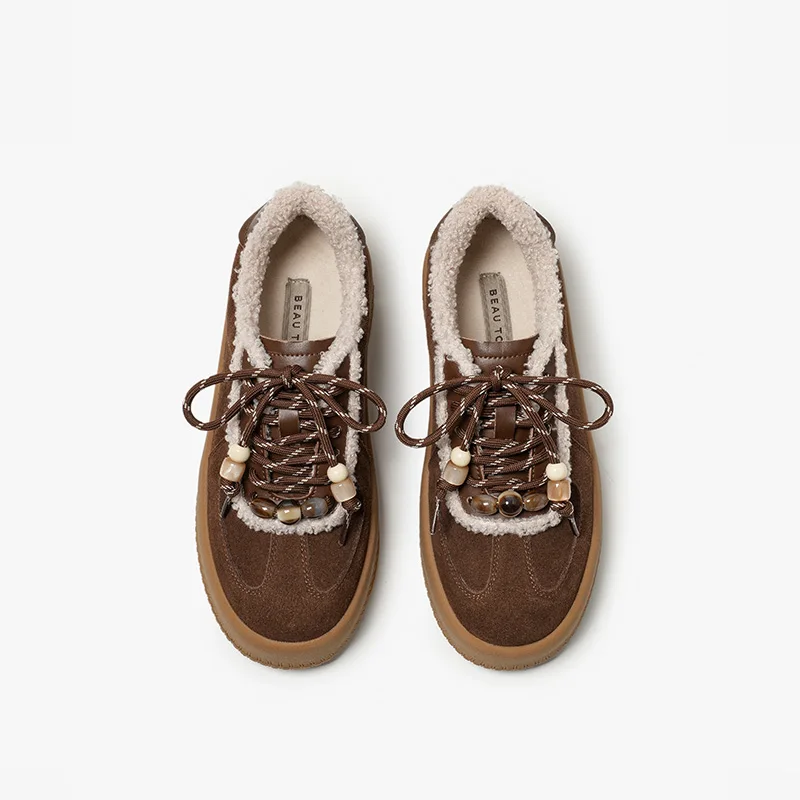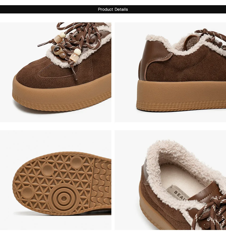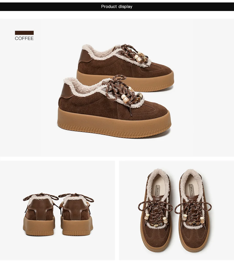 BEAUTODAY Casual Furry Sneakers Women Cow Suede Leather String Bead Traniers Lace-up Female Shoes Handmade 29972