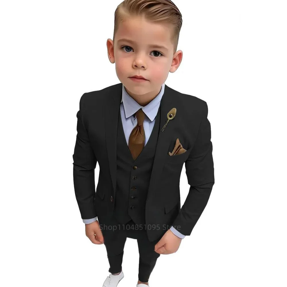 Beige High Quality Boy Suits Slim Fit Single Breasted Notch Lapel Elegant Boy 3 Piece Jacket Pants Vest Formal Kids Party Sets