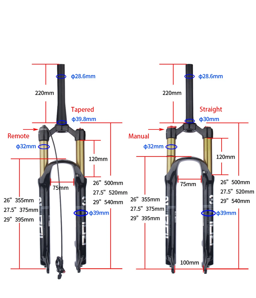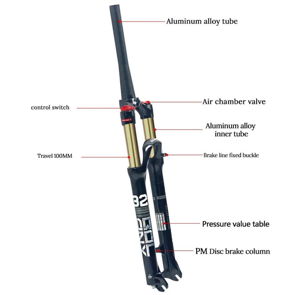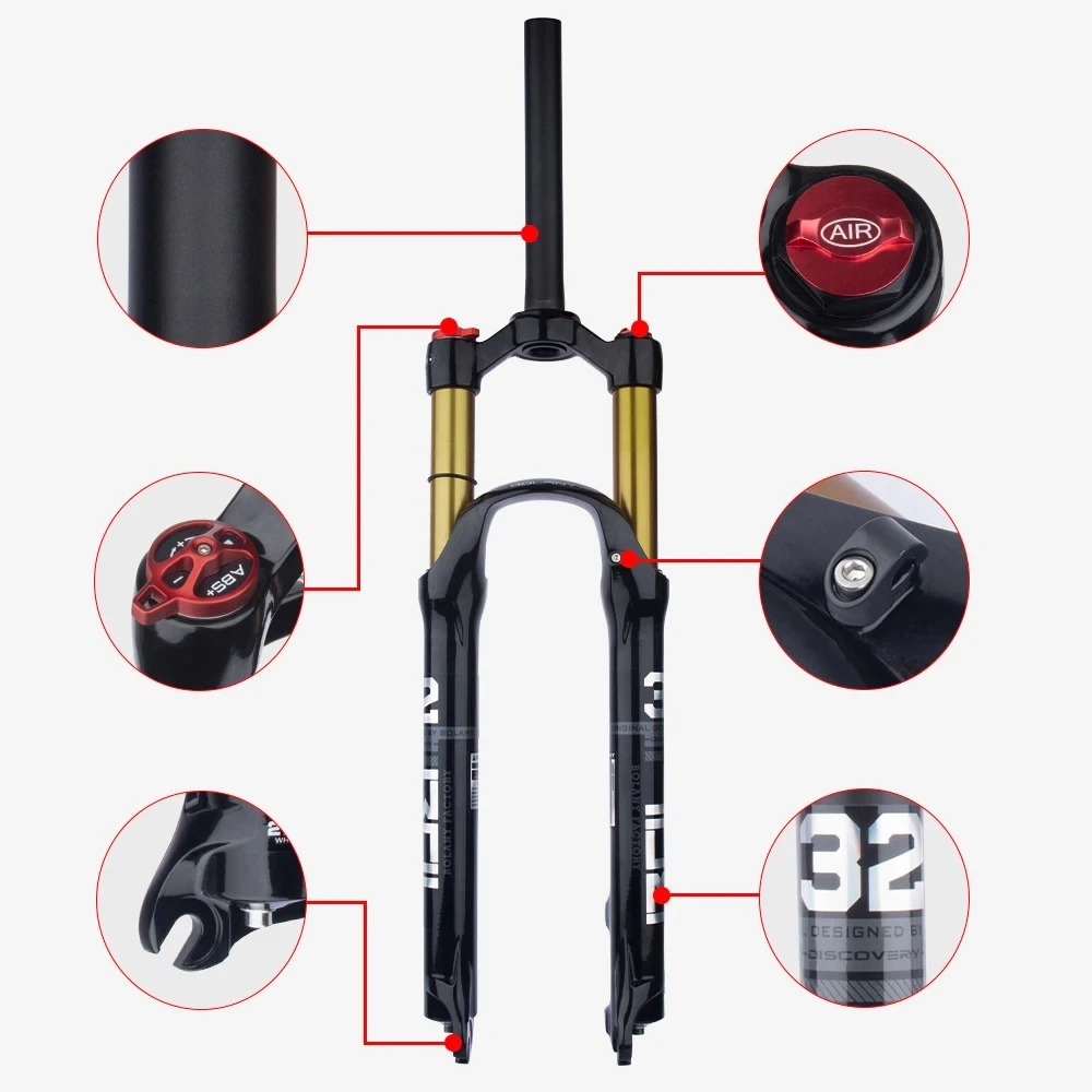 Bolany MTB Air Fork Suspension Air Shock absorption 26 27.5 29 inch Manual Remote Magnesium alloy Straight Tapered Locked Front