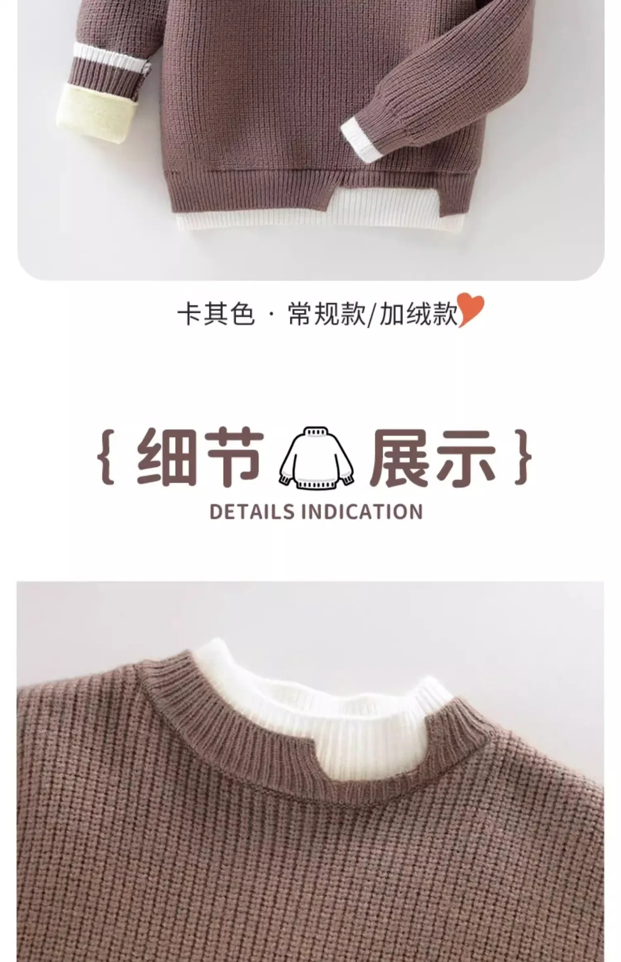 Boys Knitted Sweater Children Fashion Loose Jumper Kids Fashion Casual Autumn False Two-Piece Jumper Winter Casual Clothes