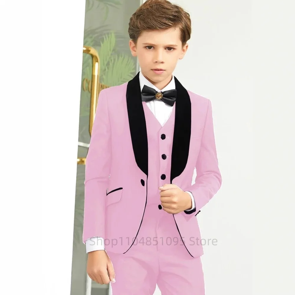 Boys Red Classic Suit Birthday Jacket Vest and Pants 3 piece Children’s Shawl Lapel Wedding Holiday Custom Children Tuxedos