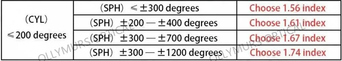 (The higher the refractive index of the lens, the thinner the lens, and the more comfortable it is to wear)