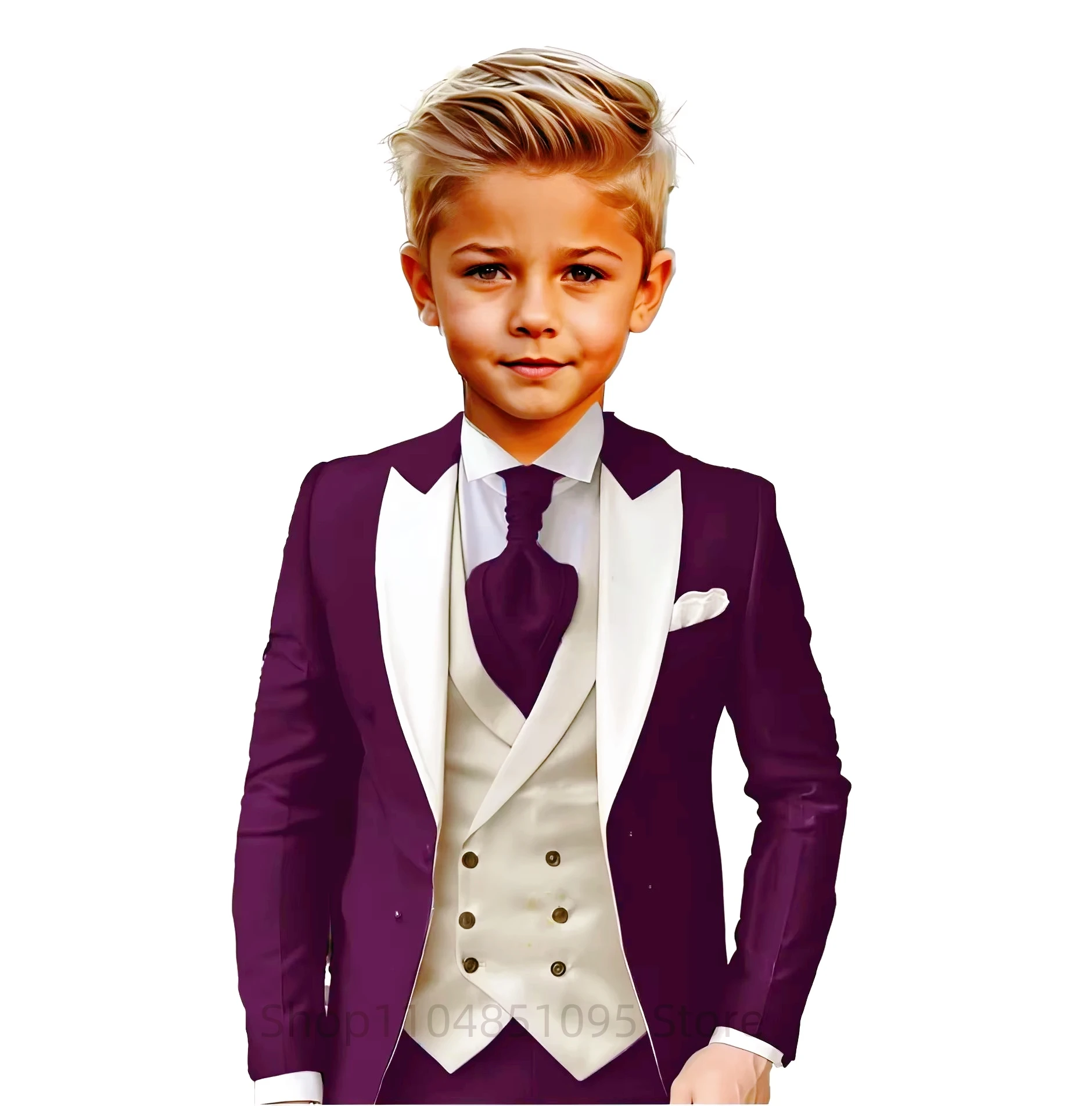 Brown 3pcs Children’s Formal Suit for Boys – Host Piano Performance Catwalk Photography Costume with Blazer Vest Pants Kid Set